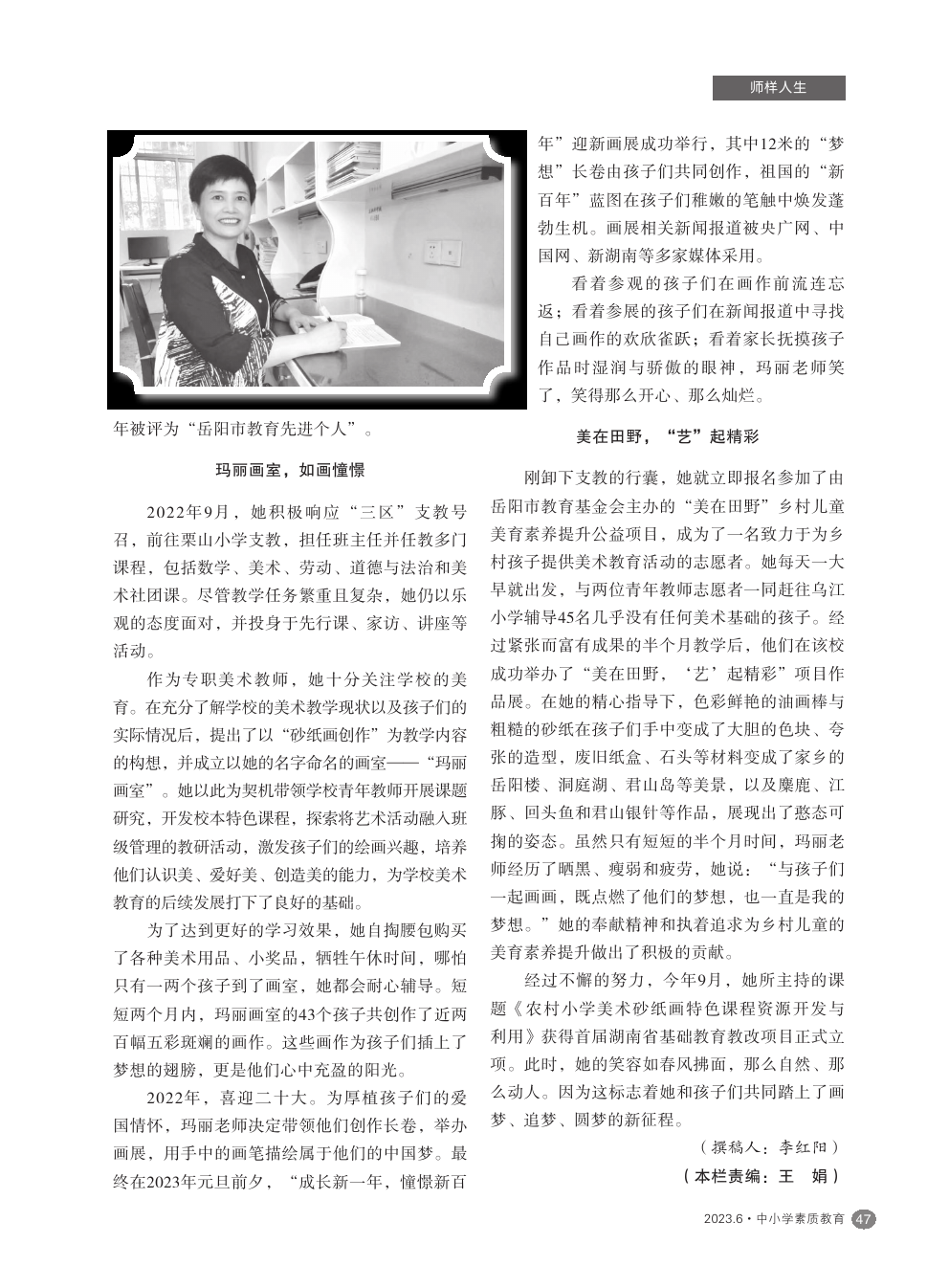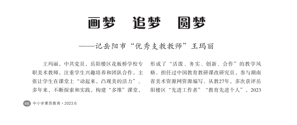 【2023年第6期】画梦 追梦 圆梦——记岳阳市”优秀支教教师“王玛丽