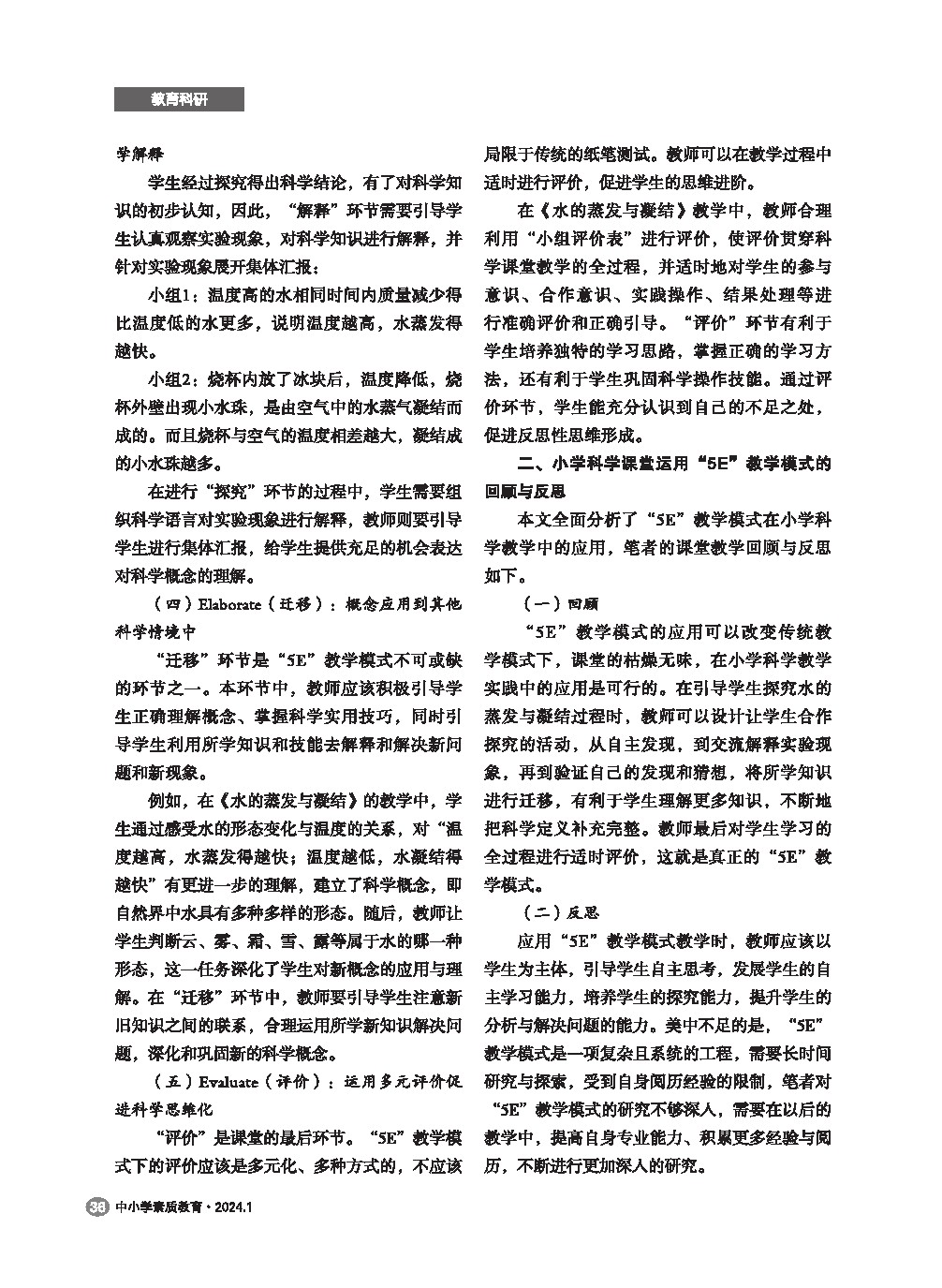 【2024年第1期】“5E”教学模式下的小学科学教学的实践——以《水的蒸发与凝结》为例