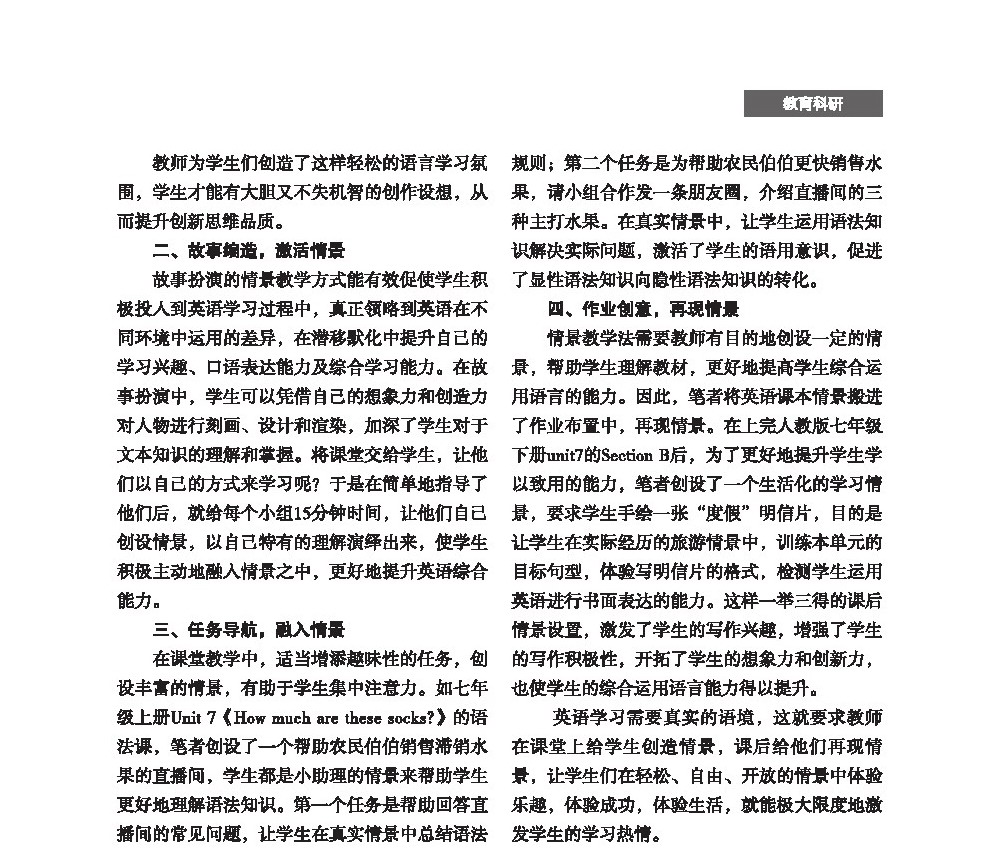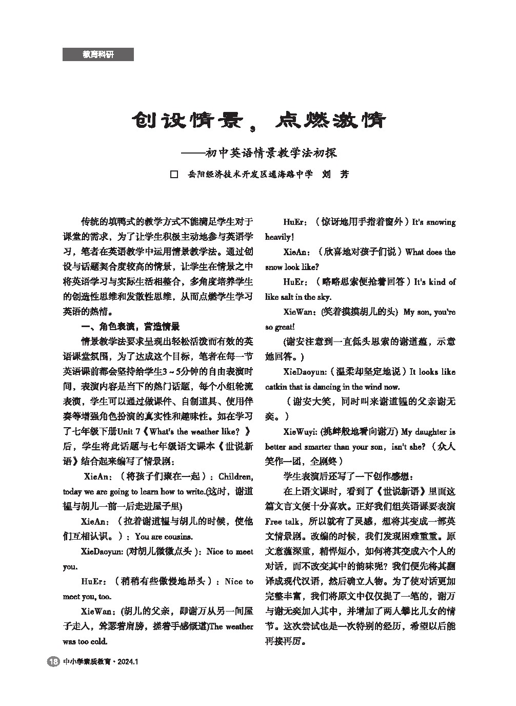 【2024年第1期】创设情景,点燃激情——初中英语情景教学法初探