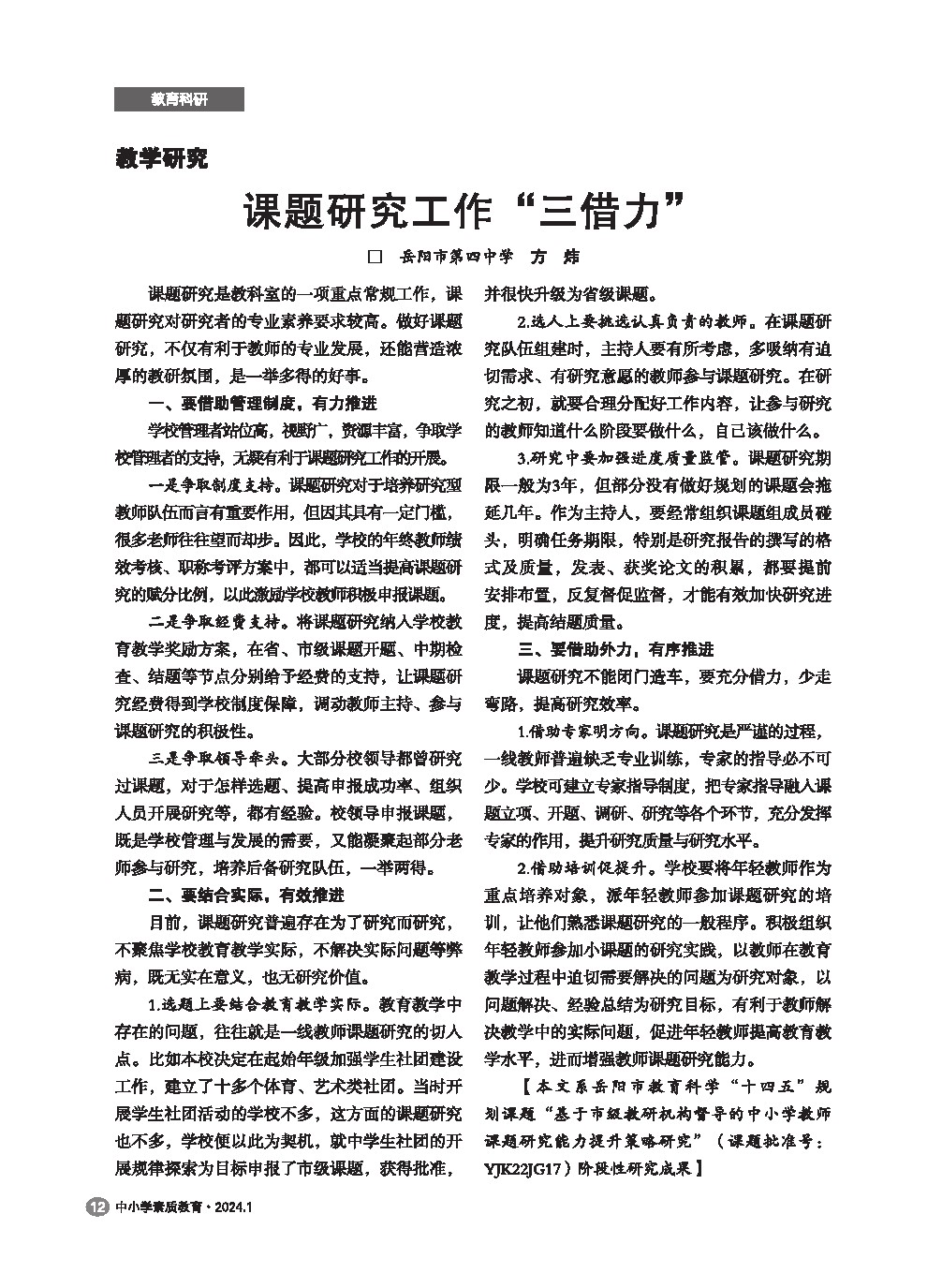 【2024年第1期】课题研究工作“三借力”