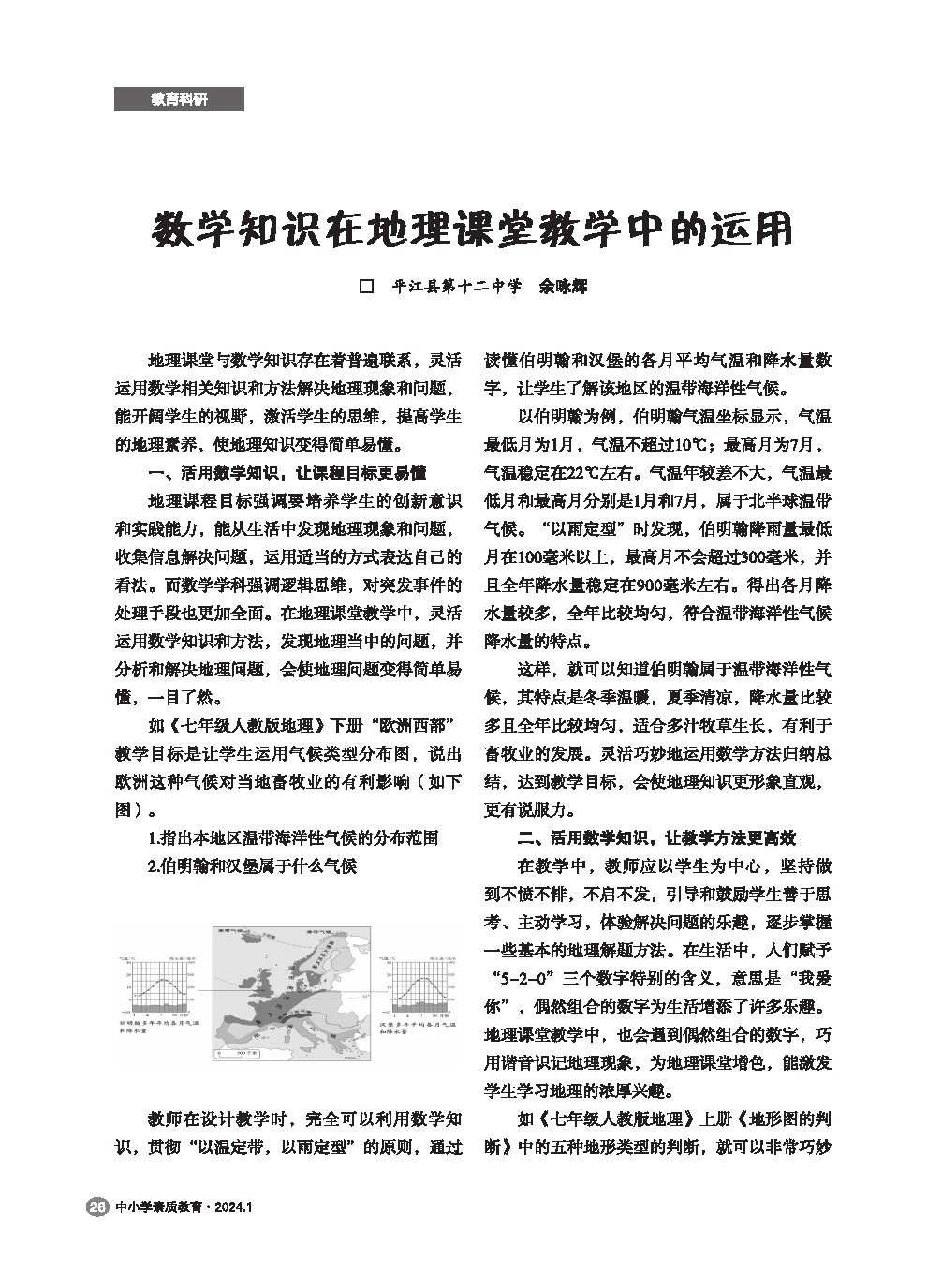 【2024年第1期】数学知识在地理课堂教学中的运用