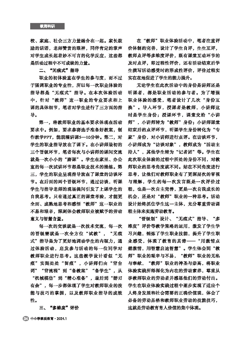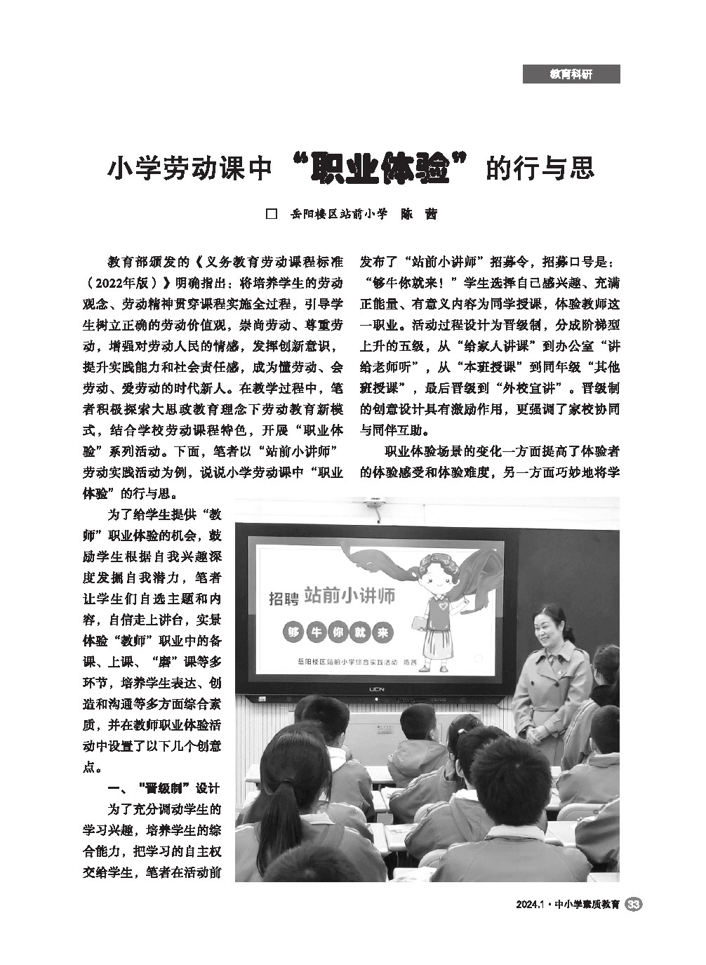【2024年第1期】小学劳动课中“职业体验”的行与思