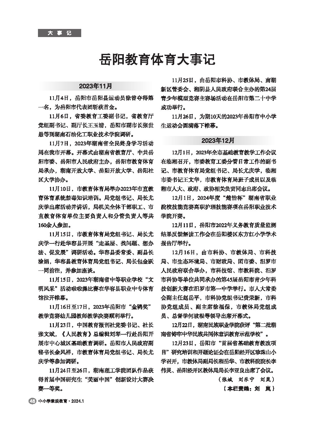 【2024年第1期】岳阳教育体育大事记