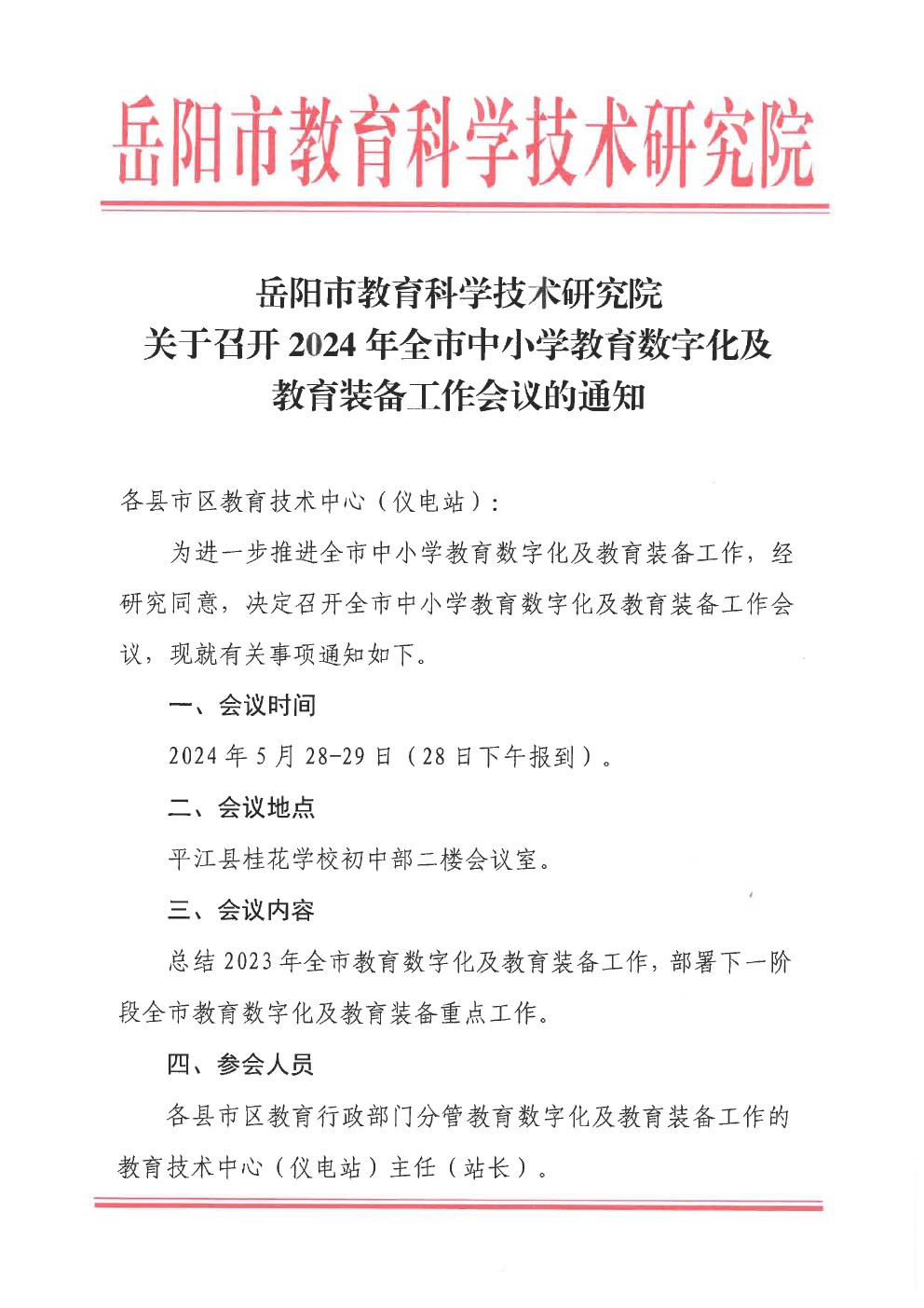 关于召开2024年全市中小学教育数字化及教育装备工作会议的通知
