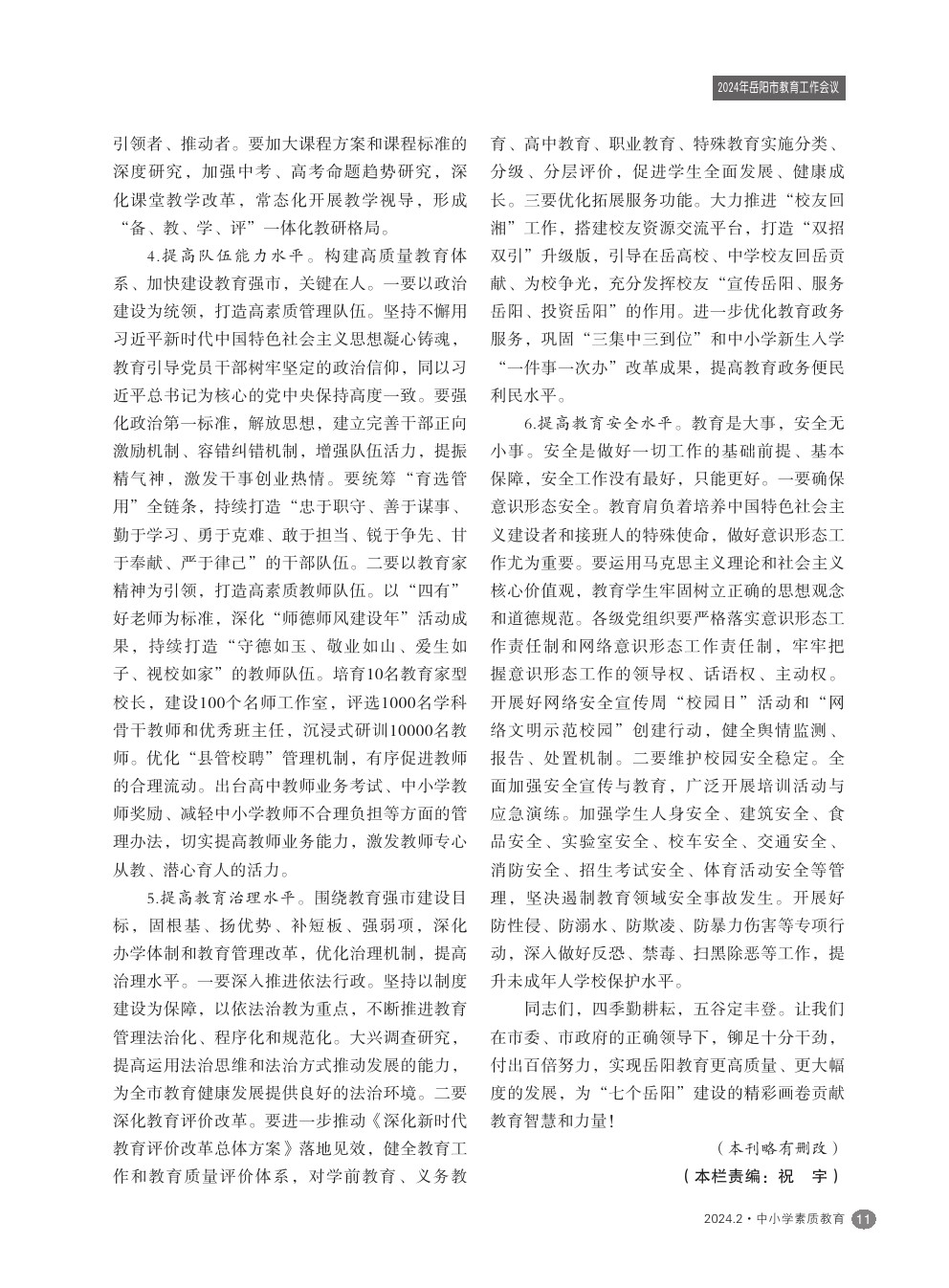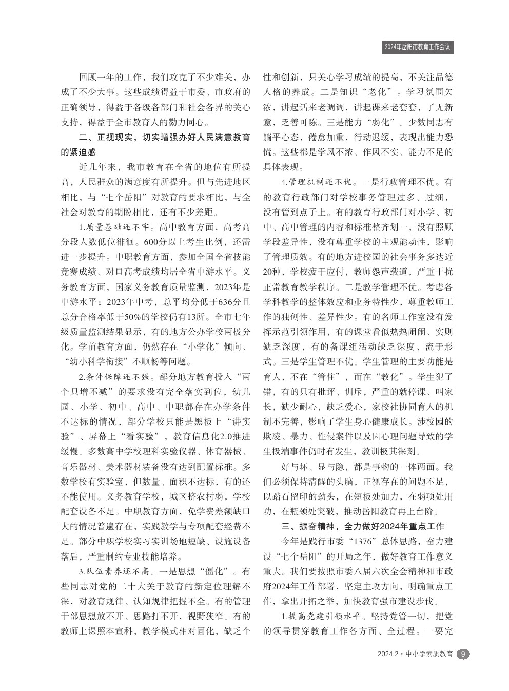 【2024年第2期】在2024年全市教育工作会议上的讲话——岳阳市教育体育局党组书记、局长 尤庆学