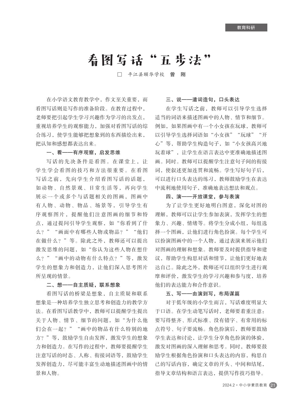 【2024年第2期】立足课堂,学会表达——小学语文教学中口语表达能力的培养