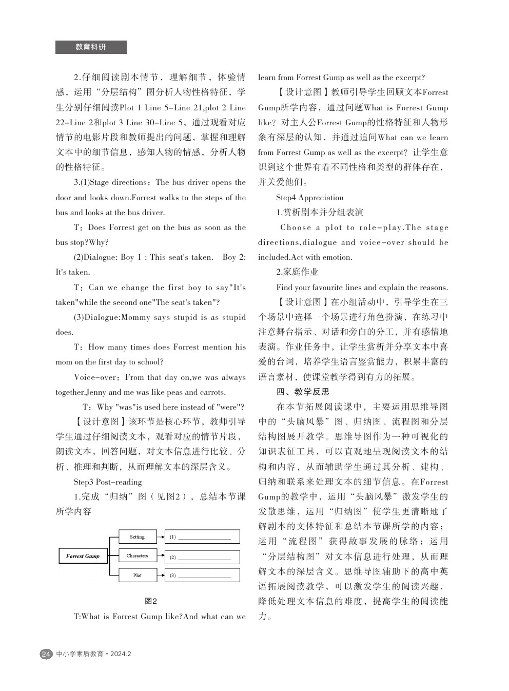 【2024年第2期】基于思维导图的高中英语拓展阅读教学设计——以Forrest Gump(Except)为例