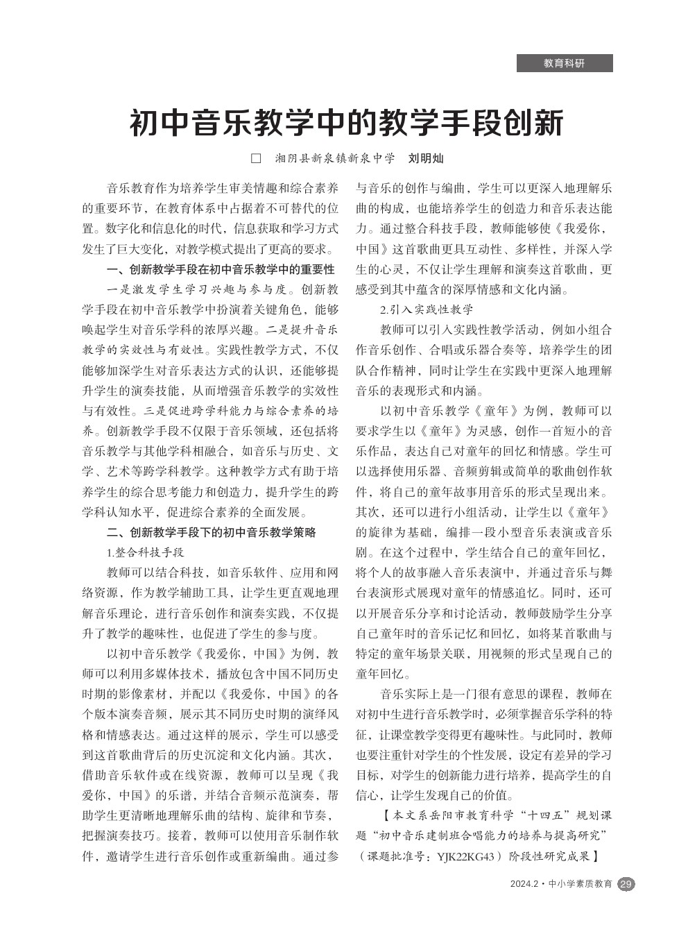 【2024年第2期】初中音乐教学中的教学手段创新