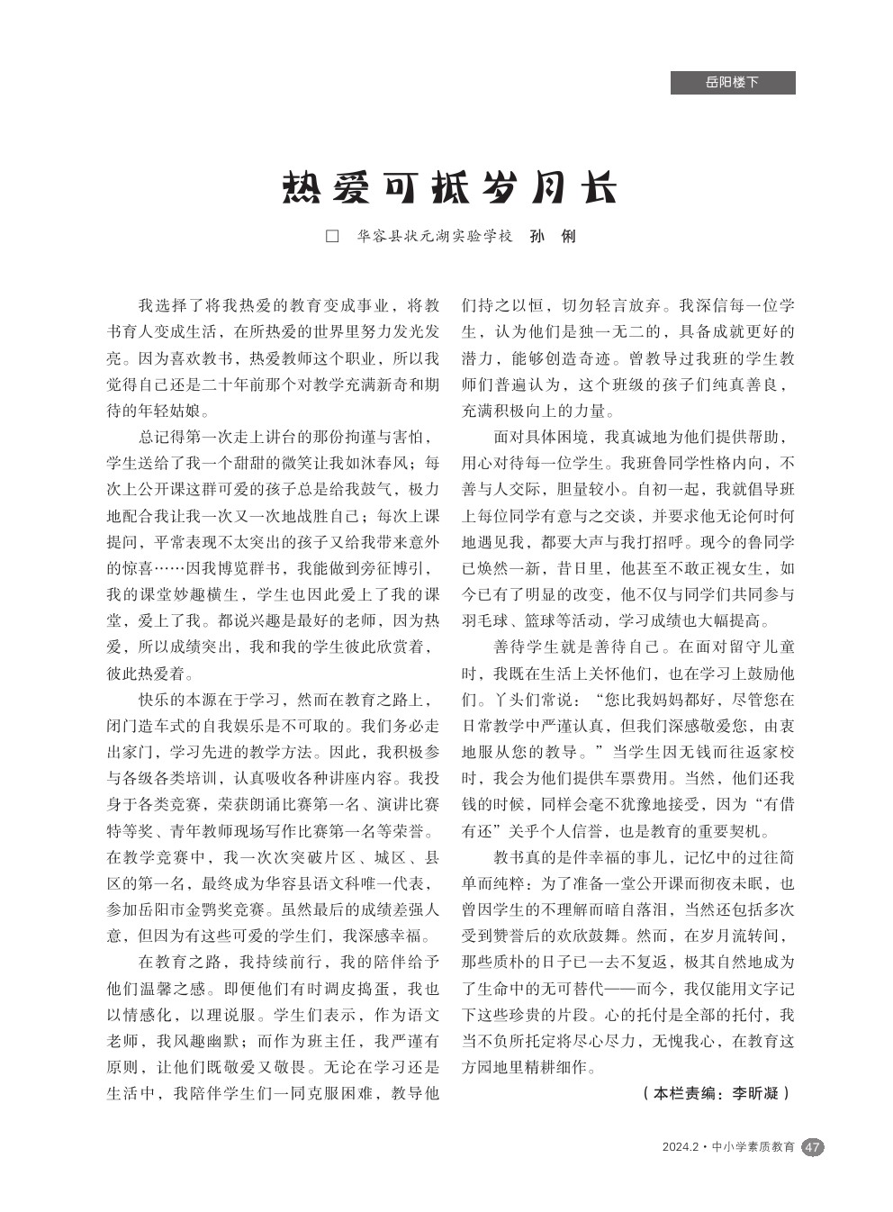【2024年第2期】热爱可抵岁月长