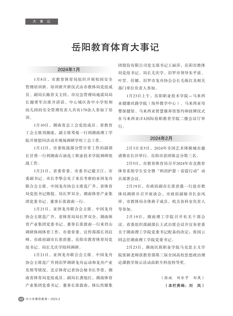 【2024年第2期】岳阳教育体育大事记(2024年1-2月)