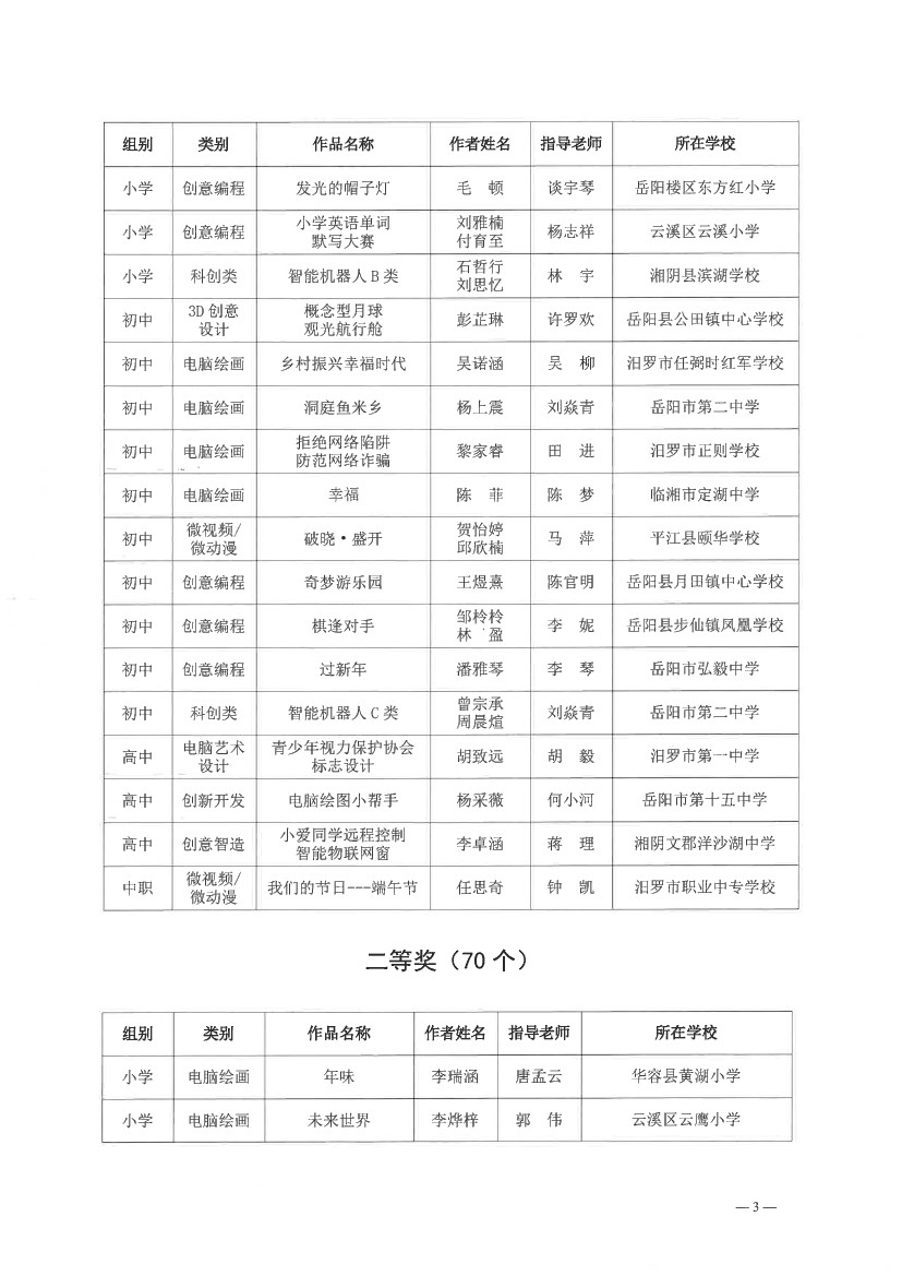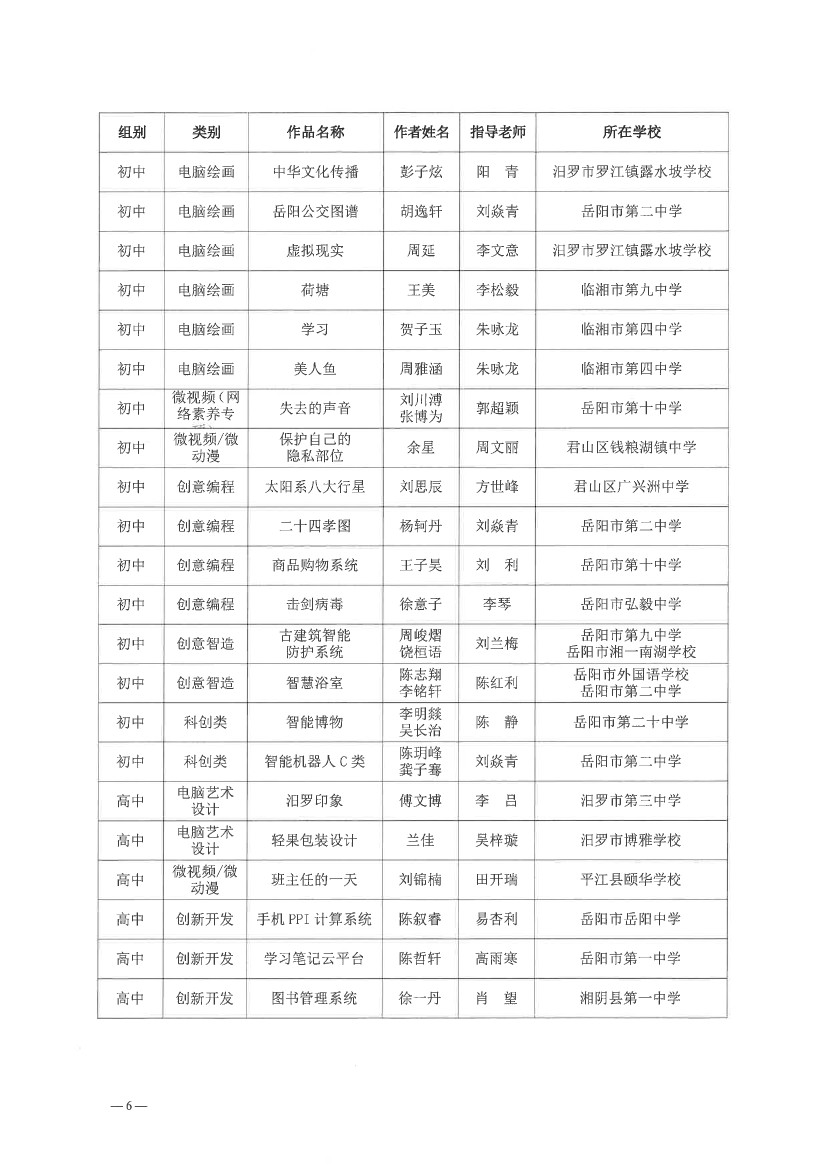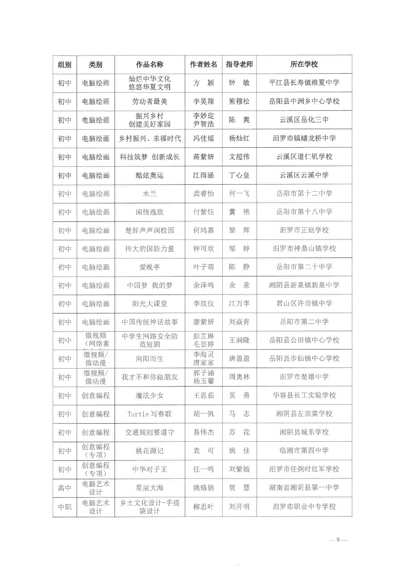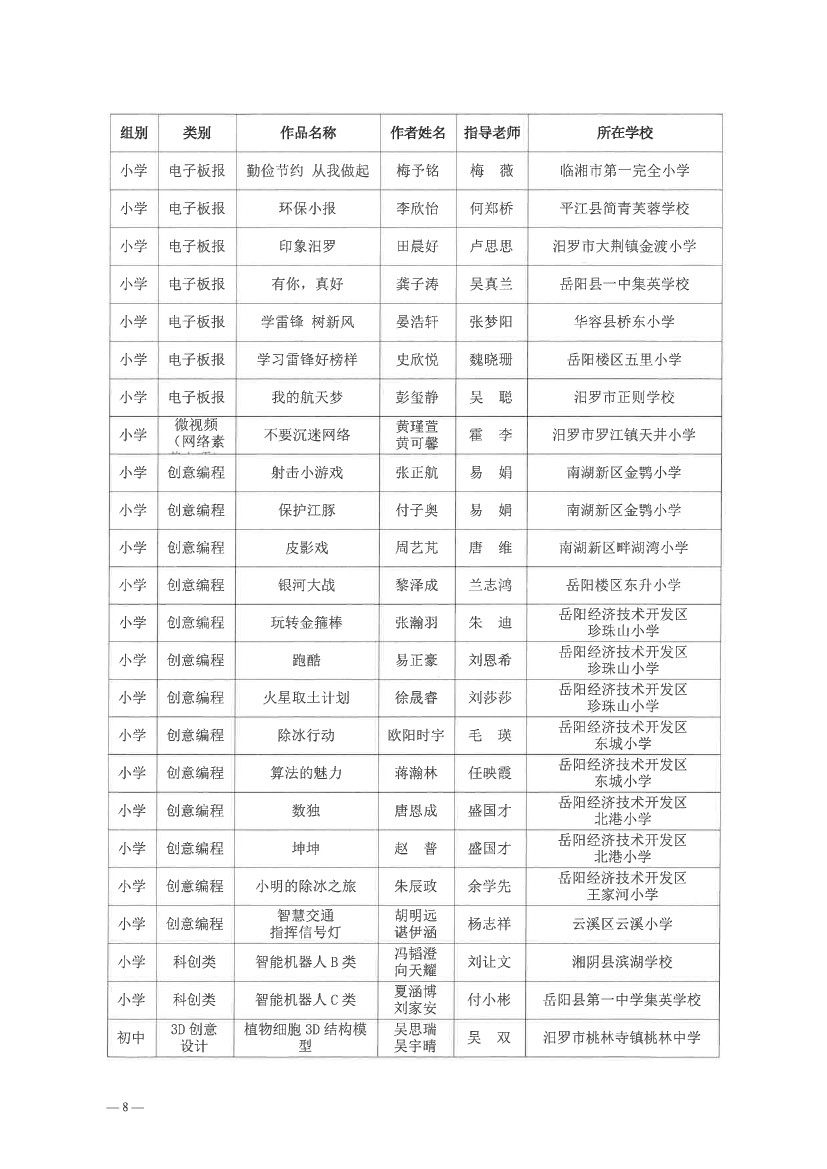 关于第二十五届岳阳市中小学生信息素养提升实践活动评选结果的通报(岳市教科〔2024〕11号)