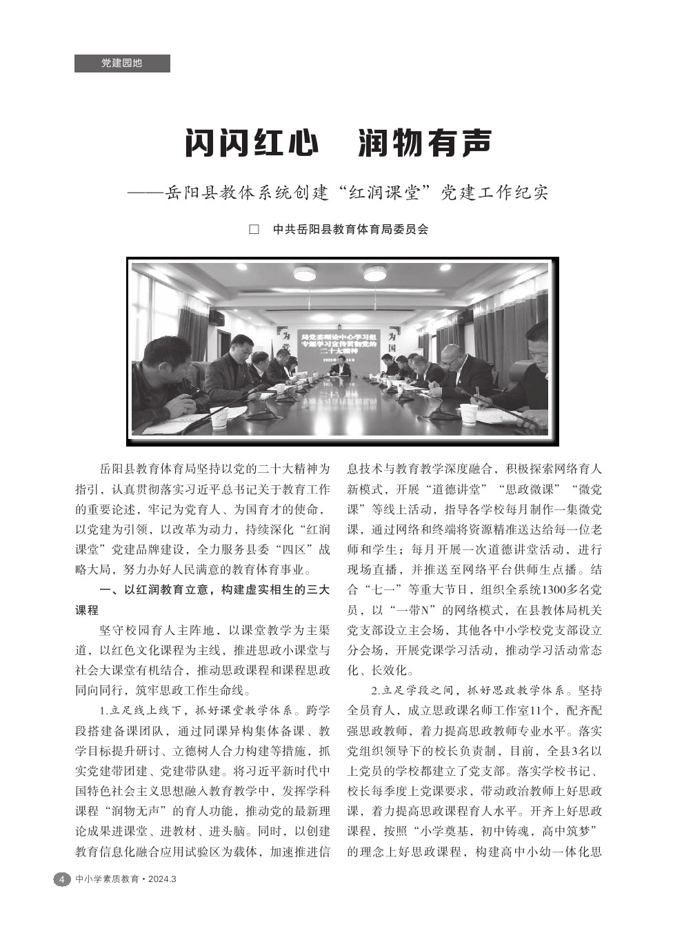 【2024年第3期】闪闪红星 润物有声——岳阳县教体系统创建“红润课堂”党建工作纪实