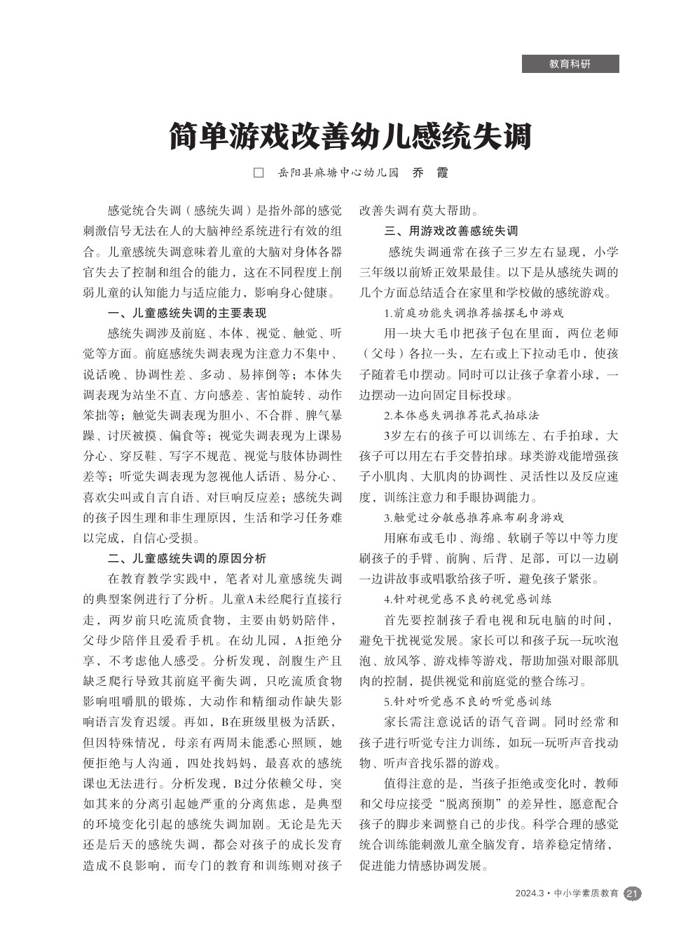 【2024年第3期】简单游戏改善幼儿感统失调