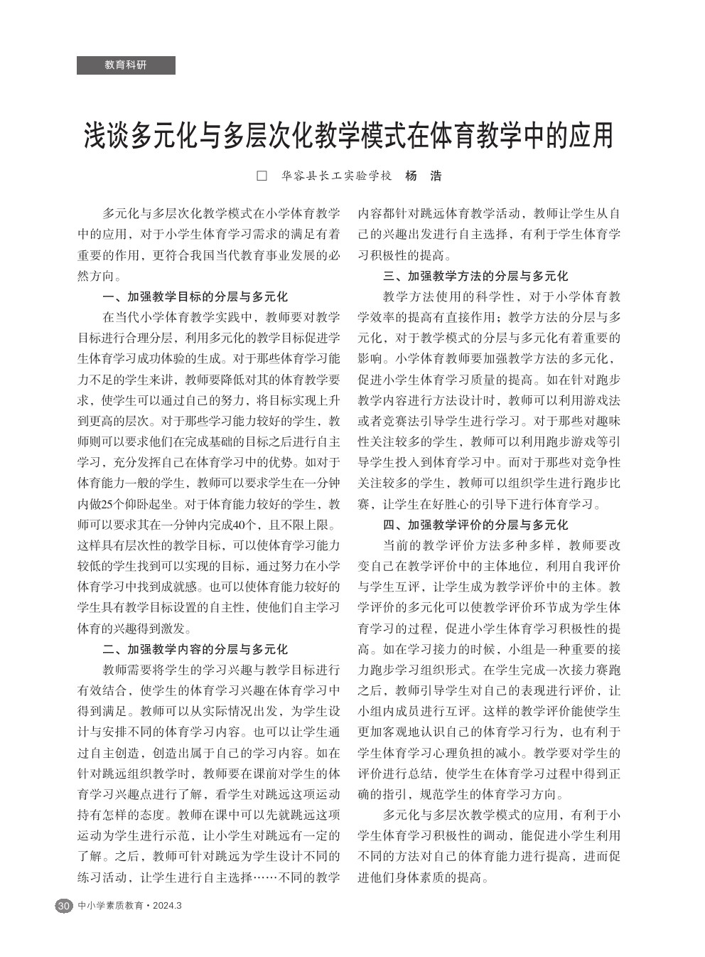 【2024年第3期】浅谈多元化与多层次化教学模式在体育教学中的应用