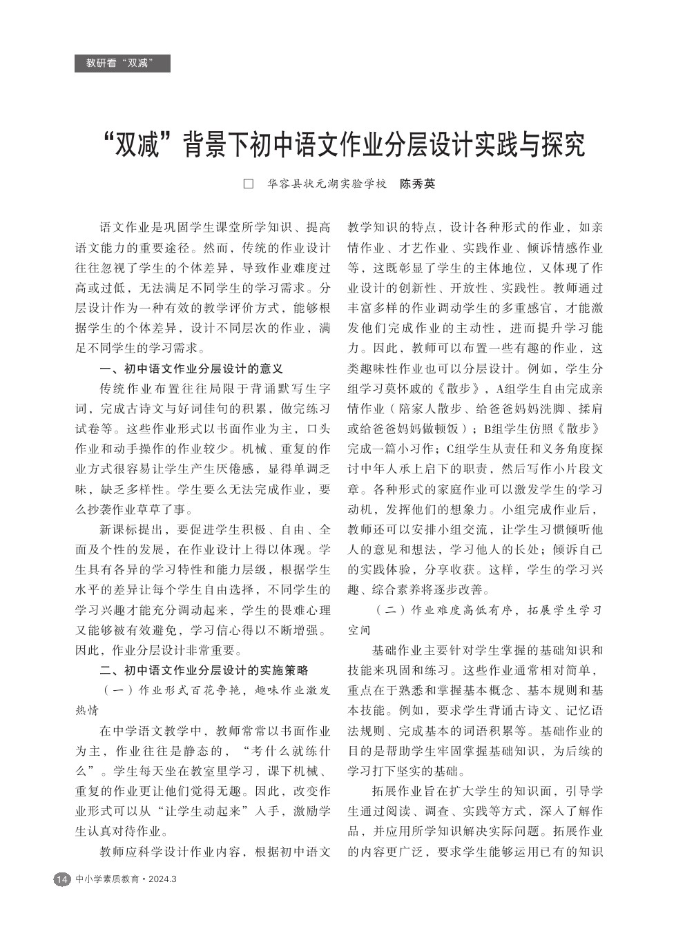 【2024年第3期】“双减”背景下初中语文作业分层设计实践与探究