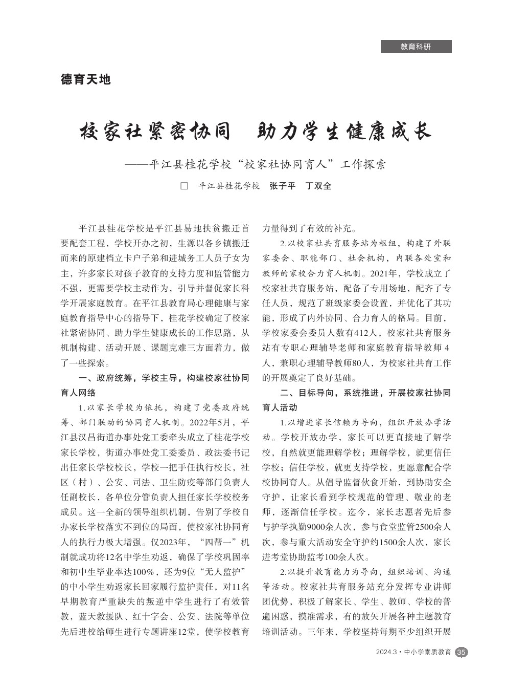 【2024年第3期】校家社紧密协同 助力学生健康成长——平江县桂花学校“校家社协同育人”工作探索