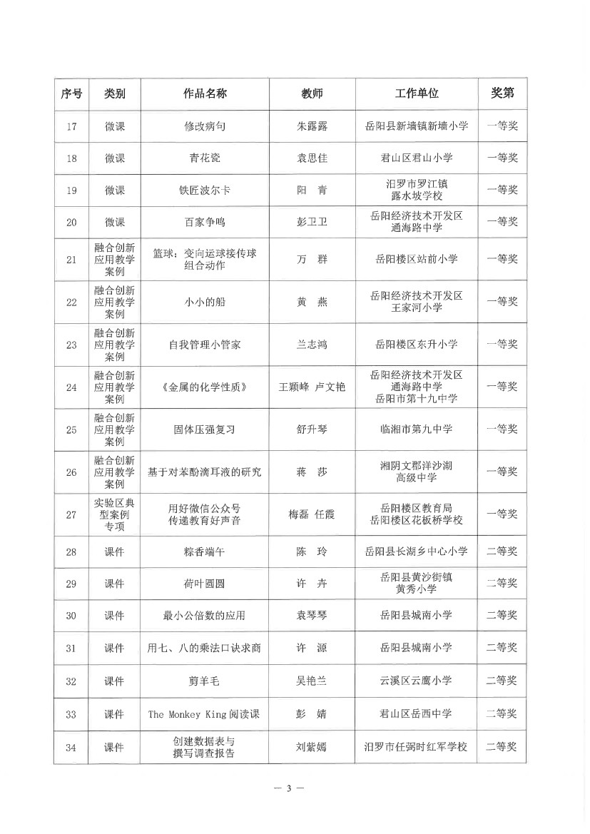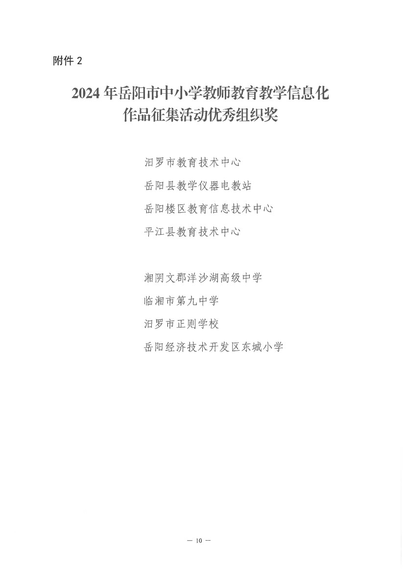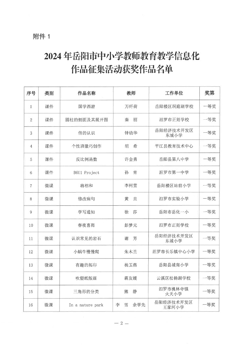 关于“2024年岳阳市中小学教师教育教学信息化作品征集活动”获奖情况的通报(岳市教科〔2024〕13号)