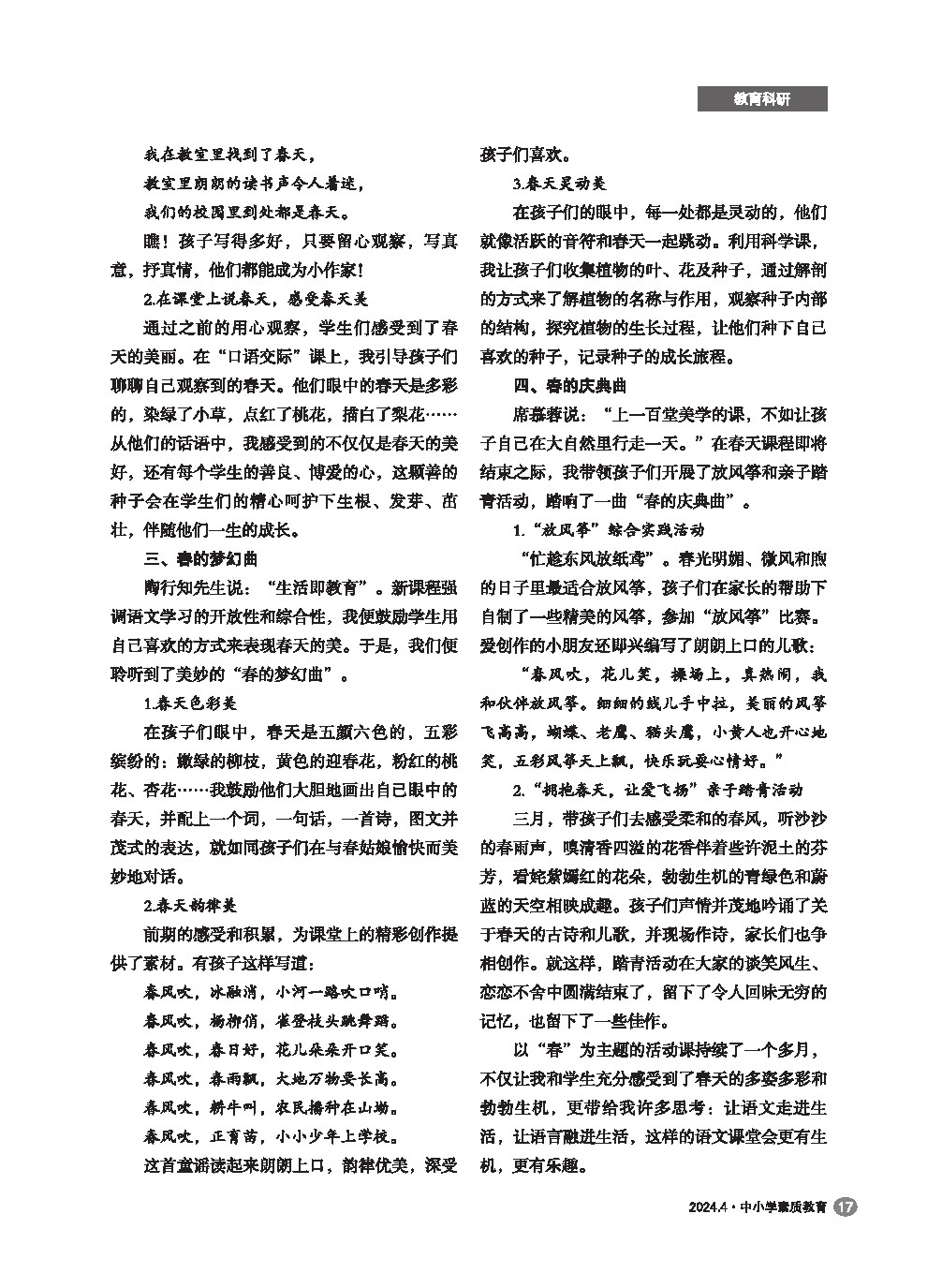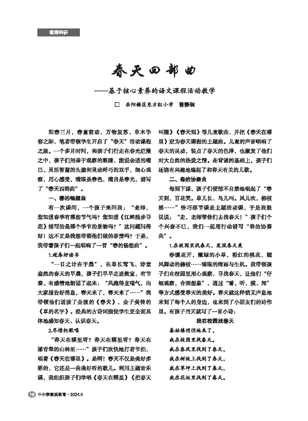 【2024年第4期】春天四部曲——基于核心素养的语文课程活动教学
