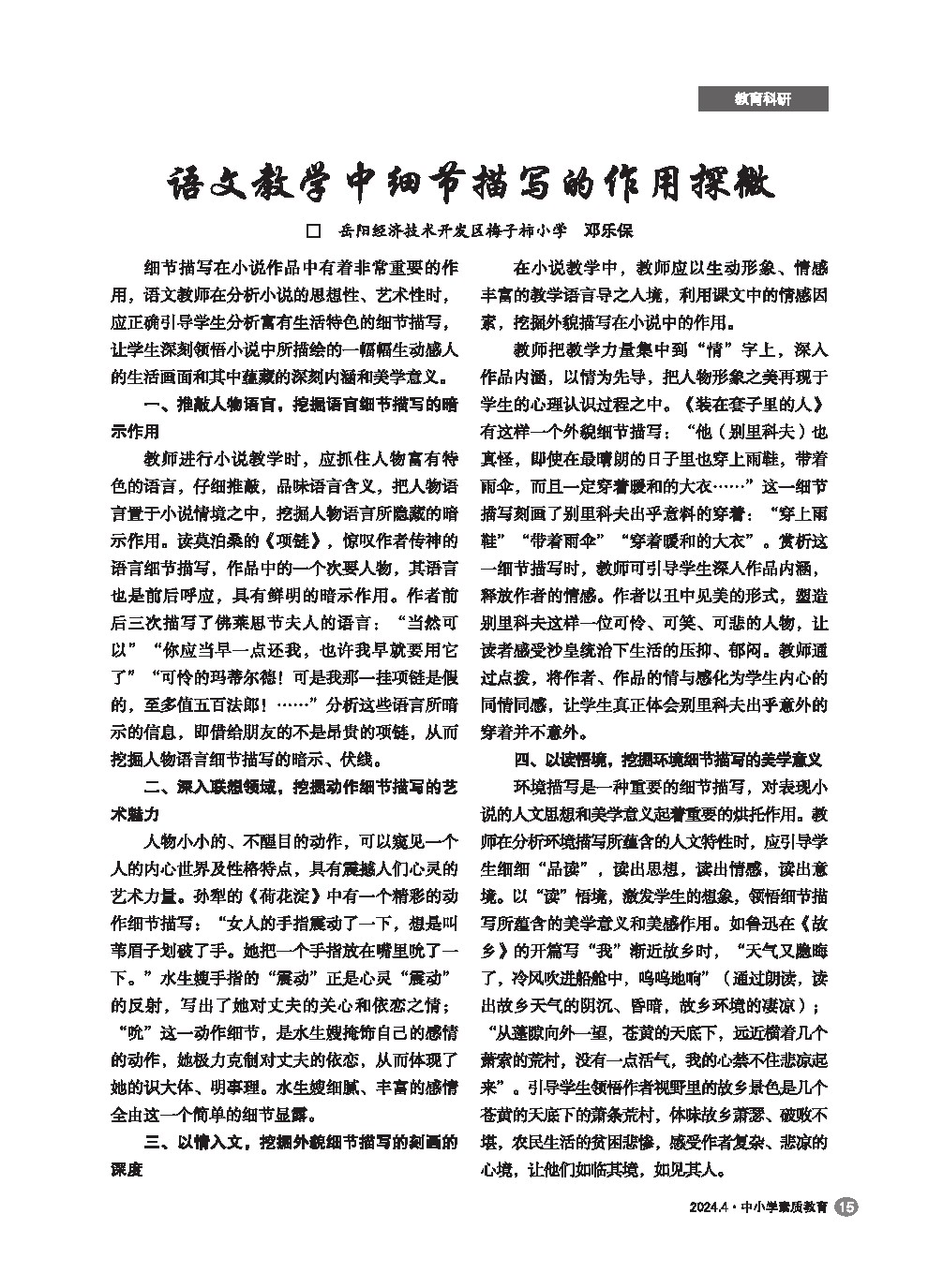 【2024年第4期】语文教学中细节描写的作用探微