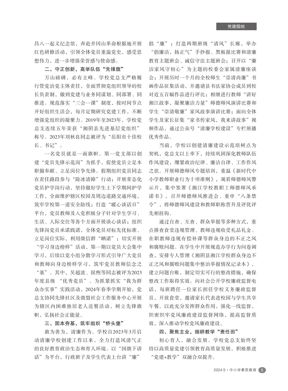 【2024年第5期】党建领航风帆劲,奋楫当先逐浪行——湘阴县湘江学校党建工作纪实