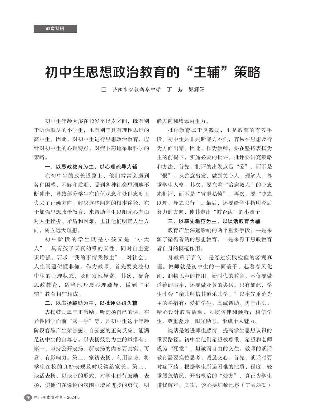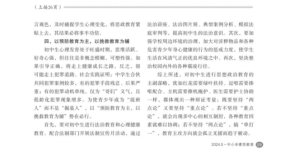 【2024年第5期】初中生思想政治教育的“主辅”策略