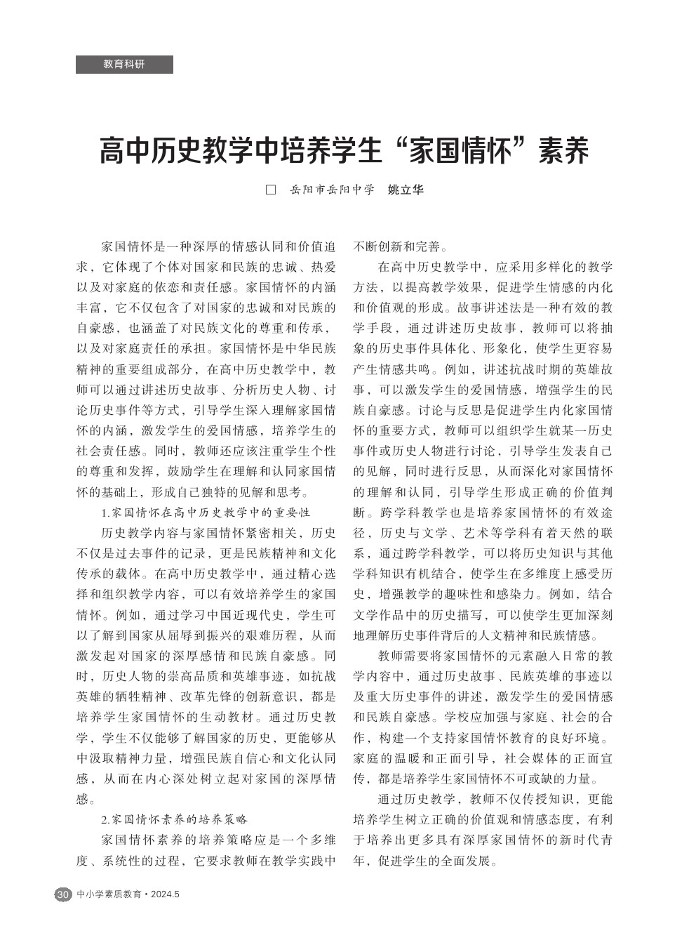 【2024年第5期】高中历史教学中培养学生“家国情怀”素养