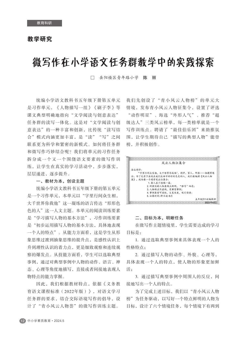 【2024年第5期】微写作在小学语文任务群教学中的实践探索