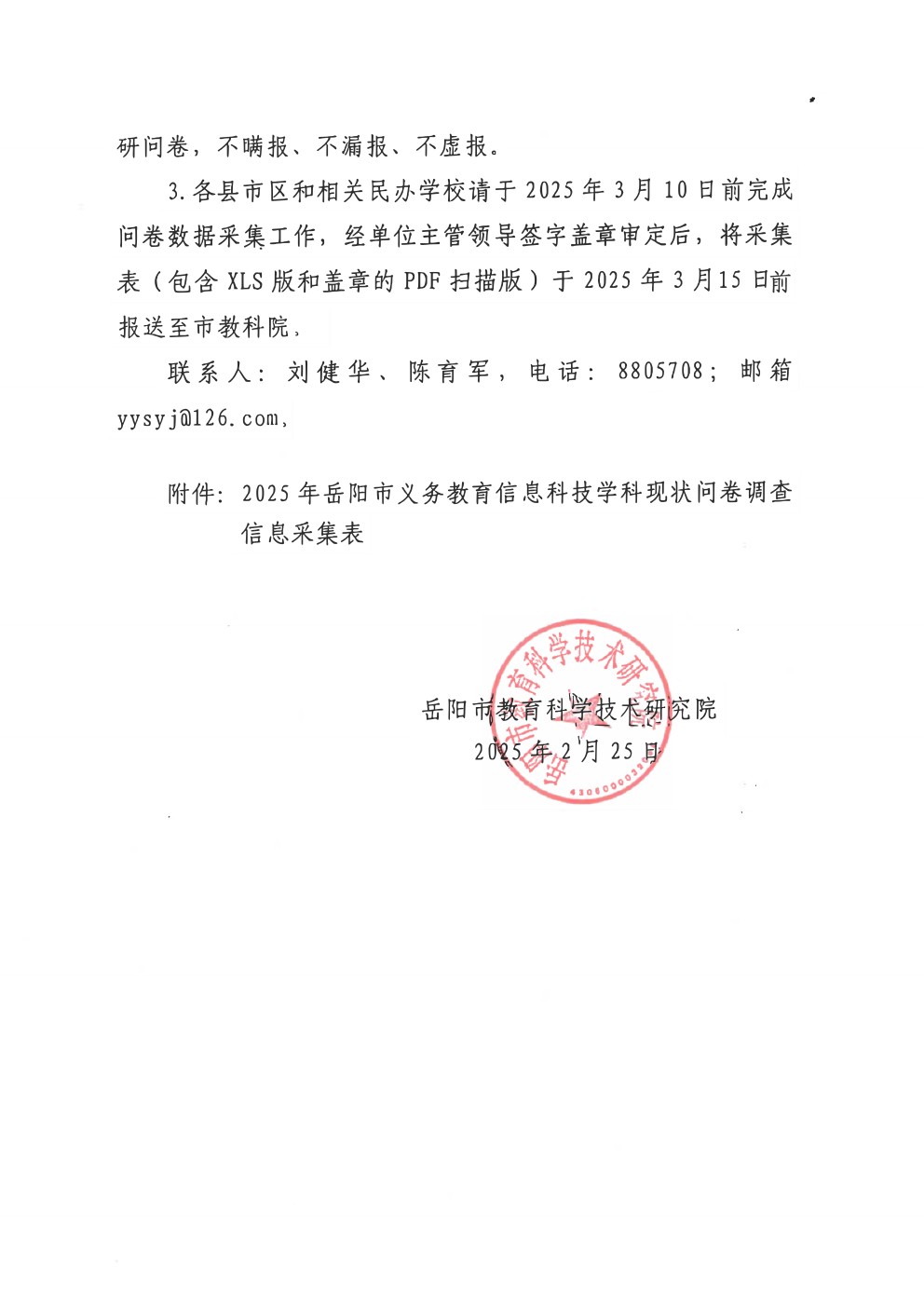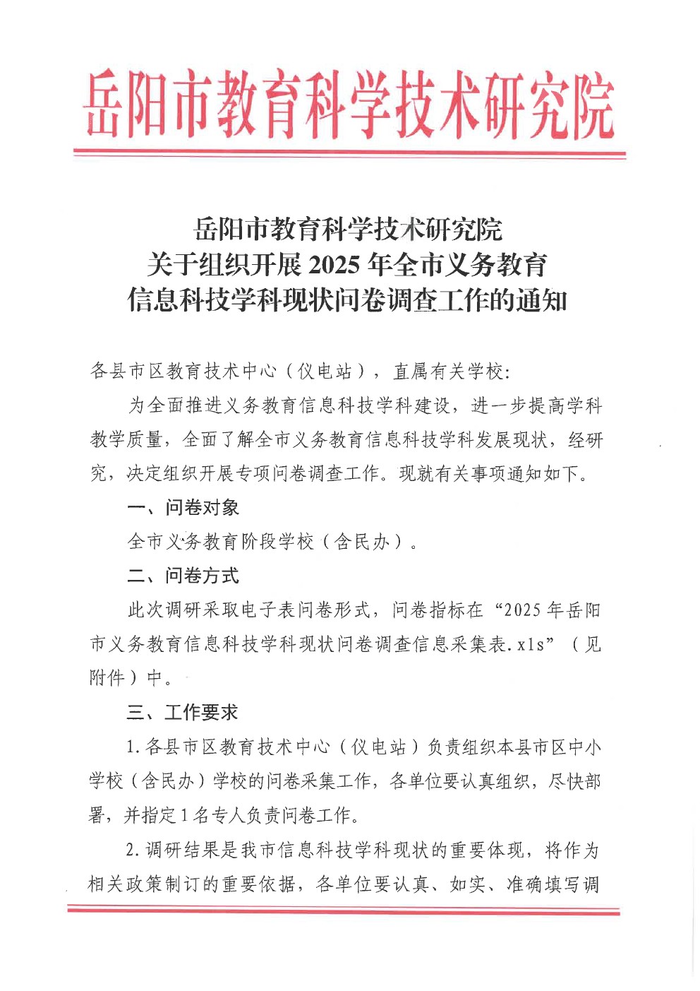 关于组织开展2025年全市义务教育信息科技学科现状问卷调查工作的通知