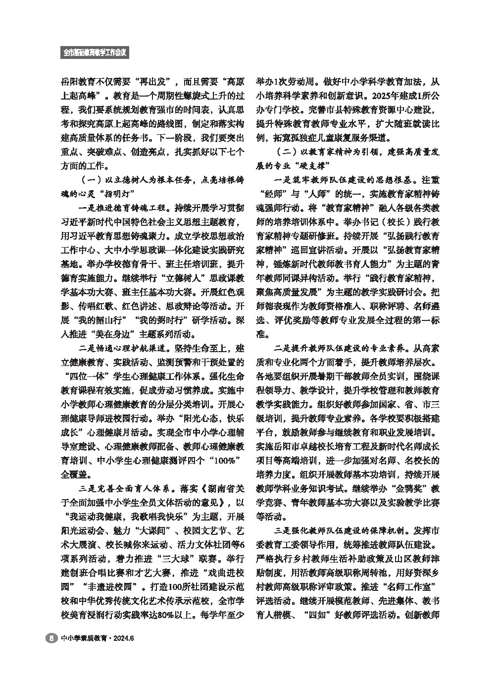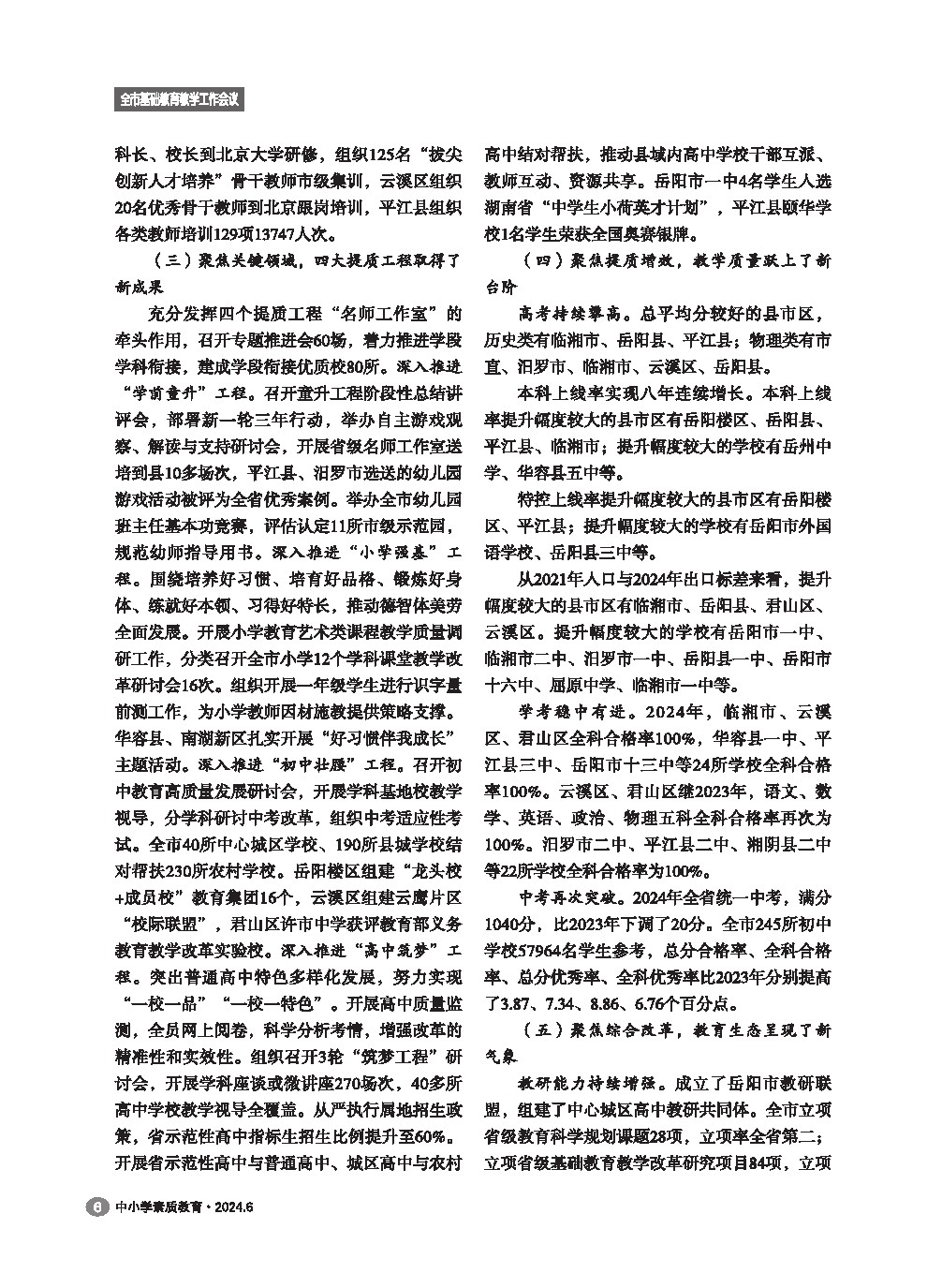 【2024年第6期】笃行实干结硕果 奋楫扬帆启新程 以改革创新之笔书写教育强市建设新答卷——在2023-2024学年度全市基础教育教学工作会议上的讲话