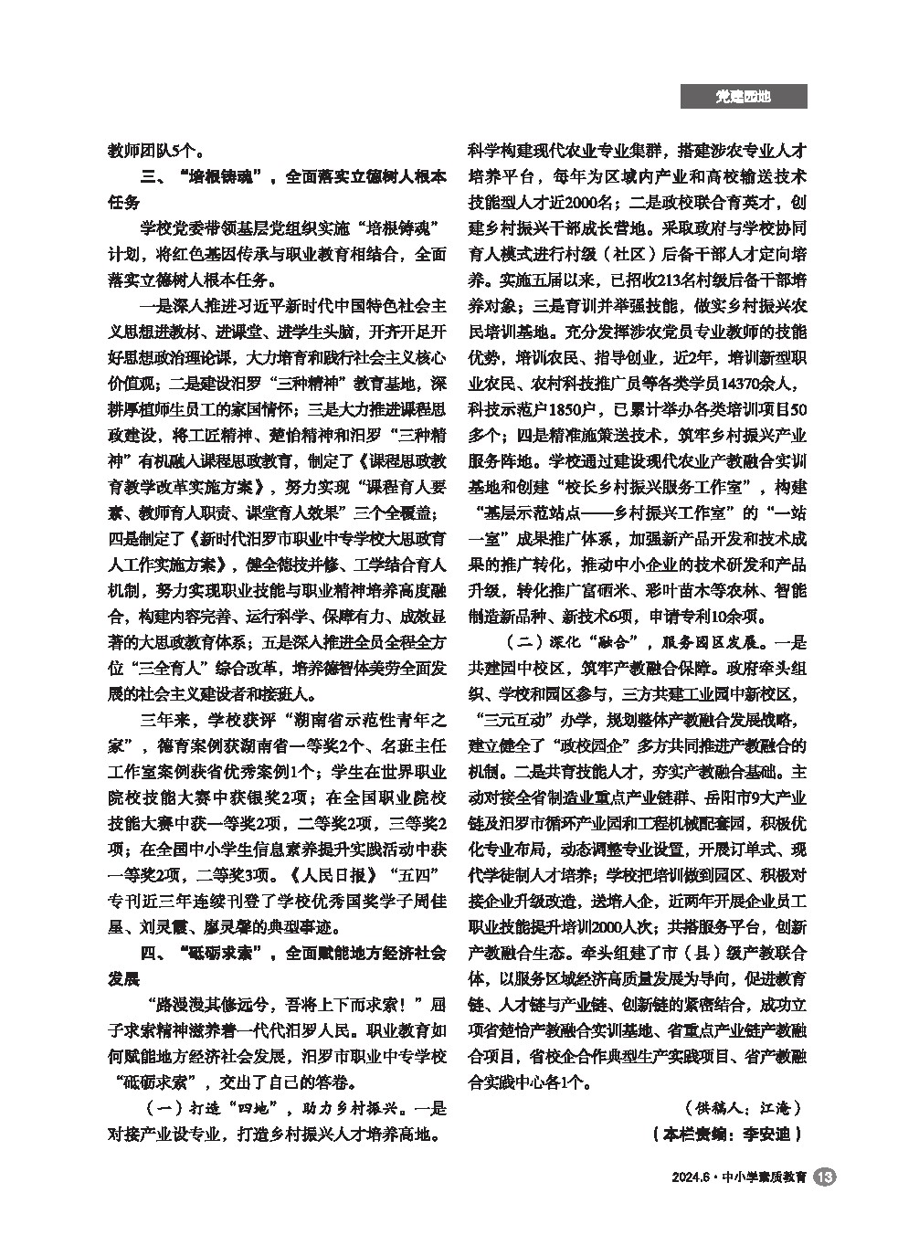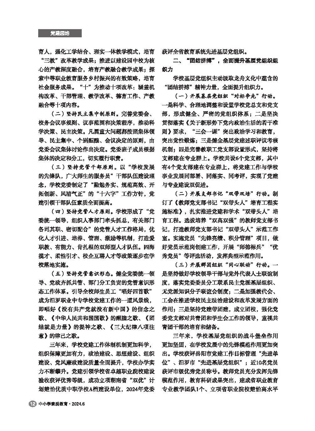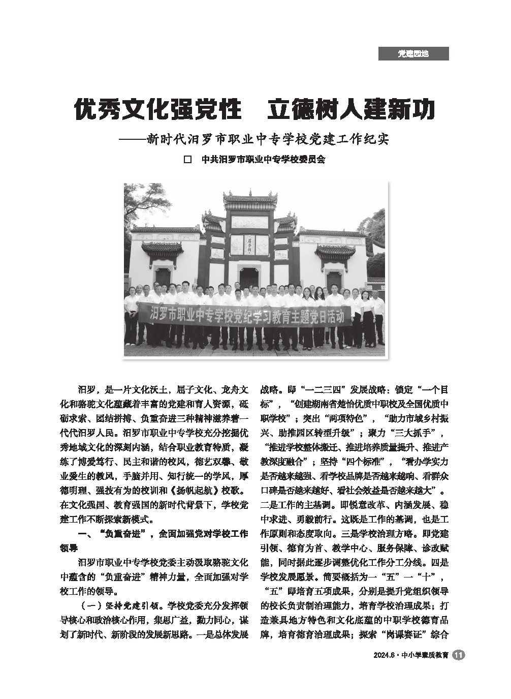 【2024年第6期】优秀文化强党性 立德树人建新功——新时代汨罗市职业中专学校党建工作纪实