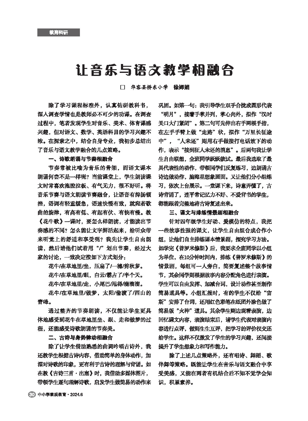 【2024年第6期】让音乐与语文教学相融合