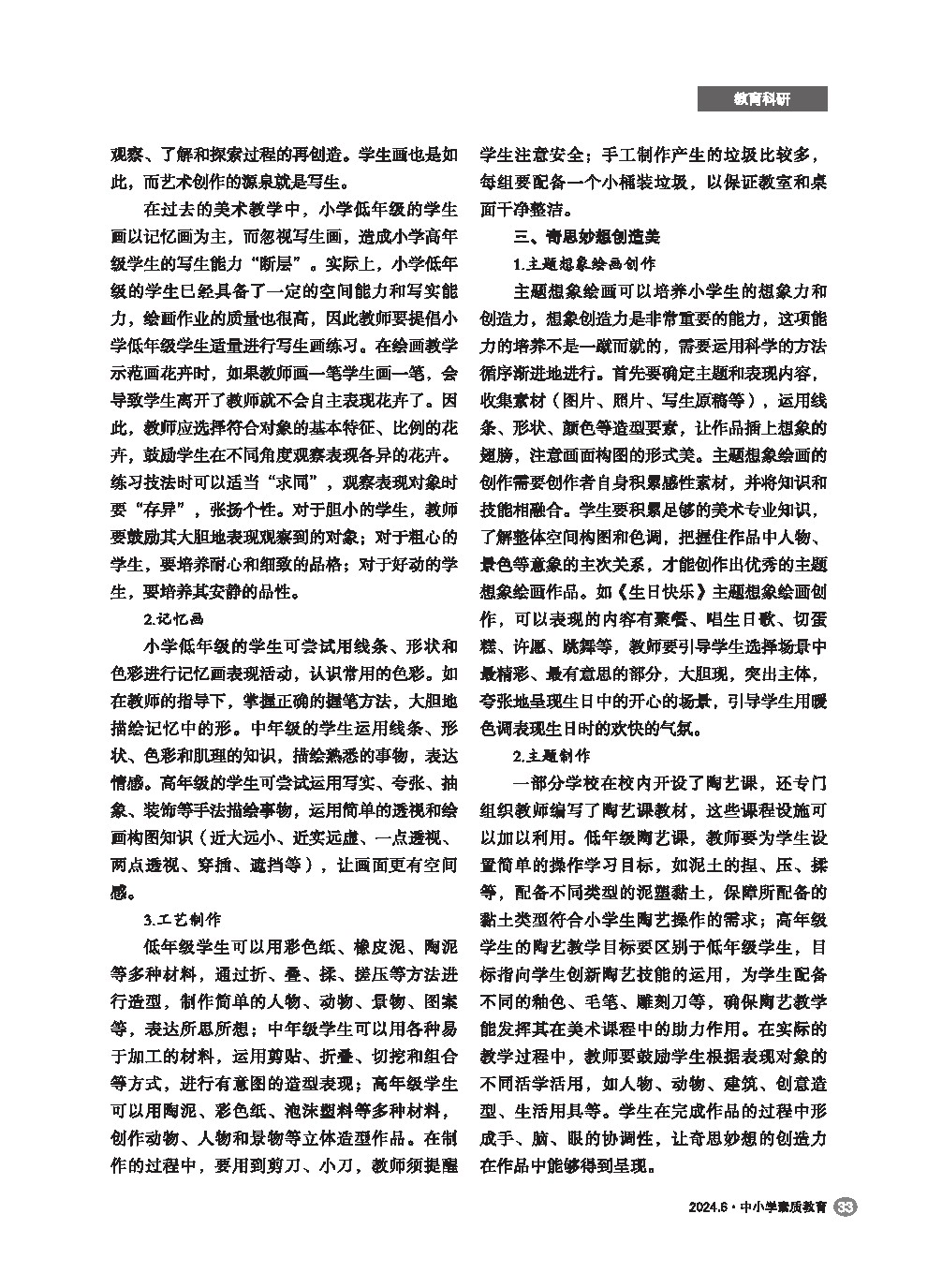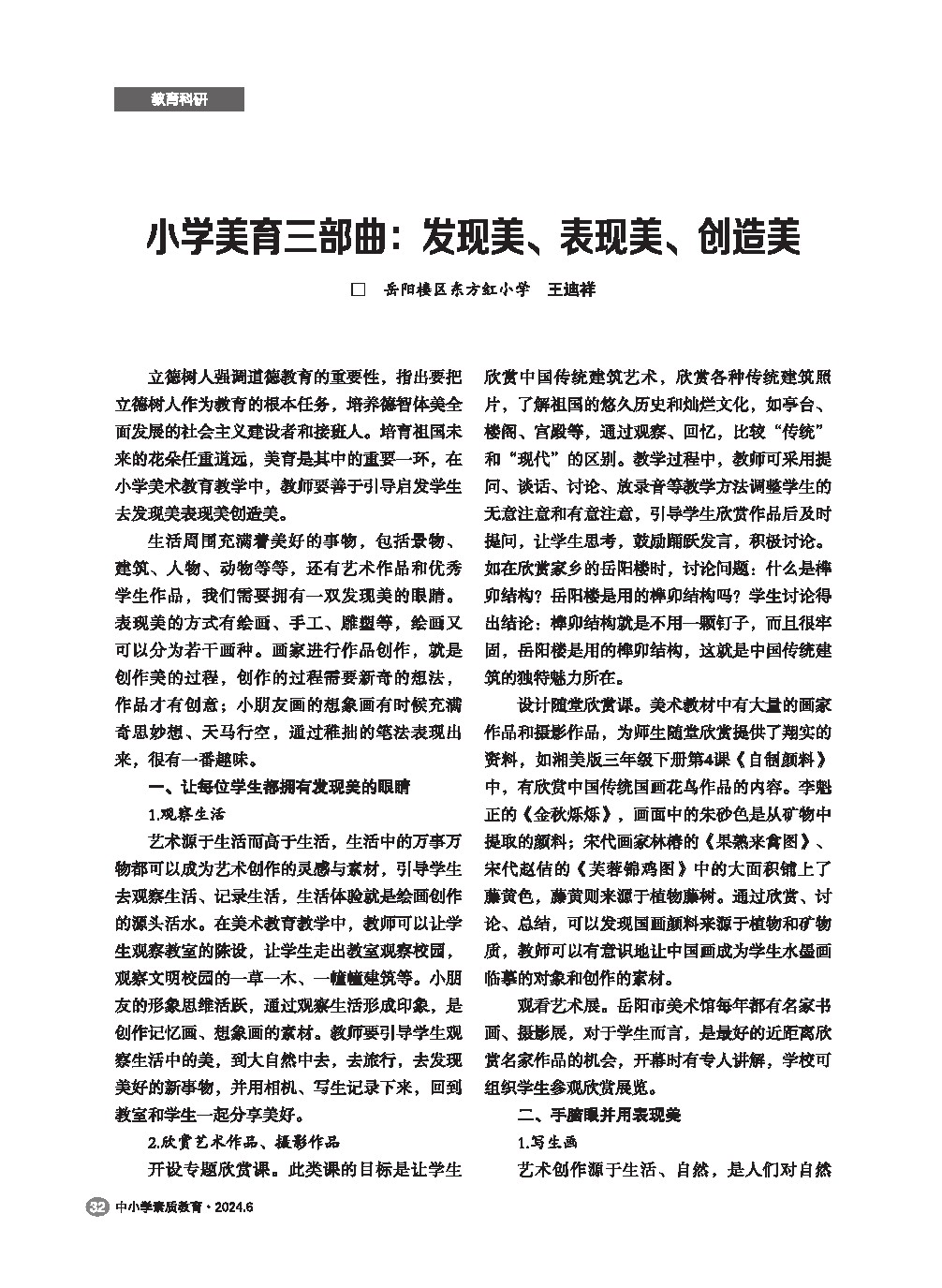 【2024年第6期】小学美育三部曲:发现美、表现美、创造美
