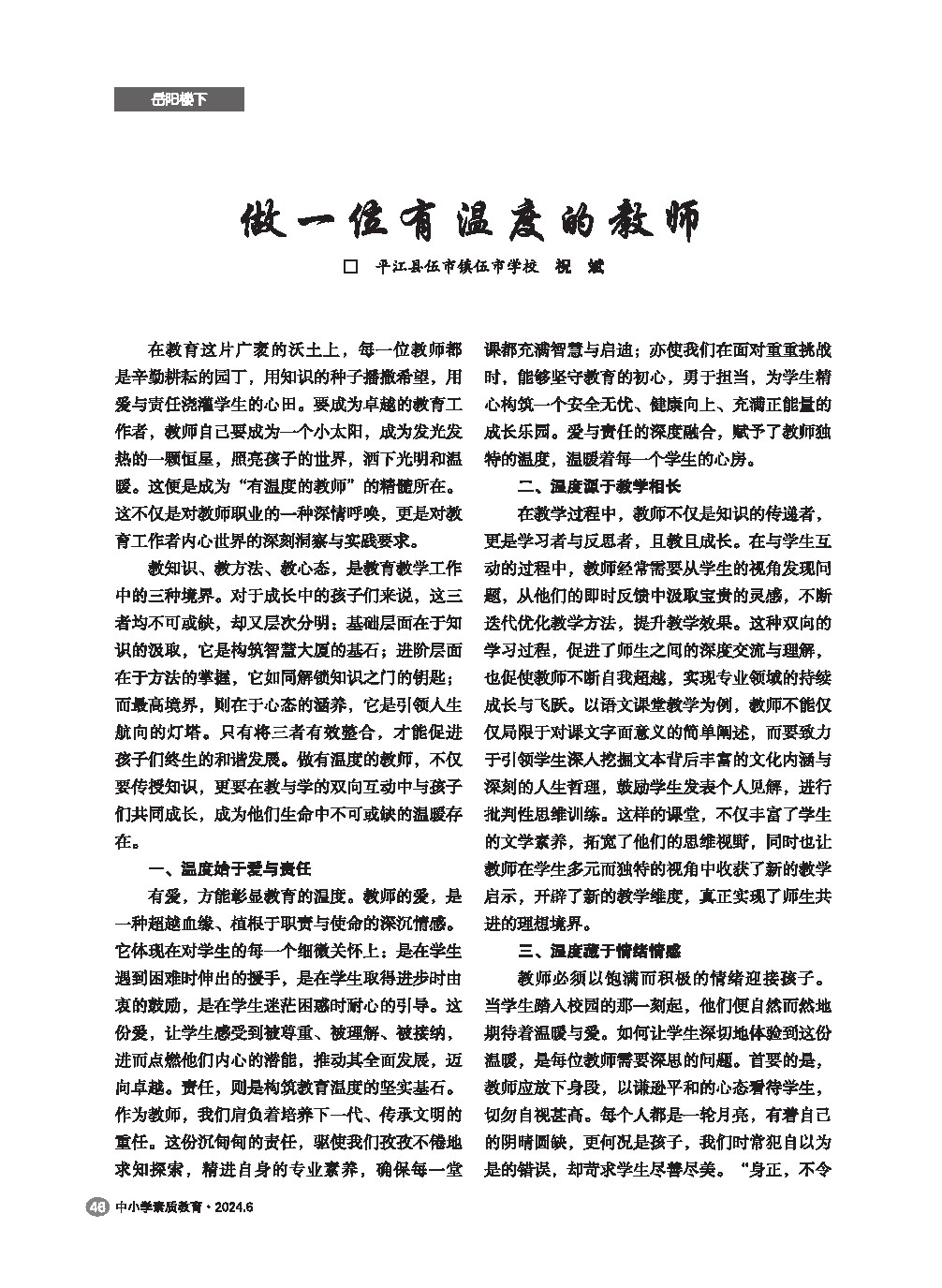 【2025年第1期】论教师的”冷眼看穿“与”热肠挂住“