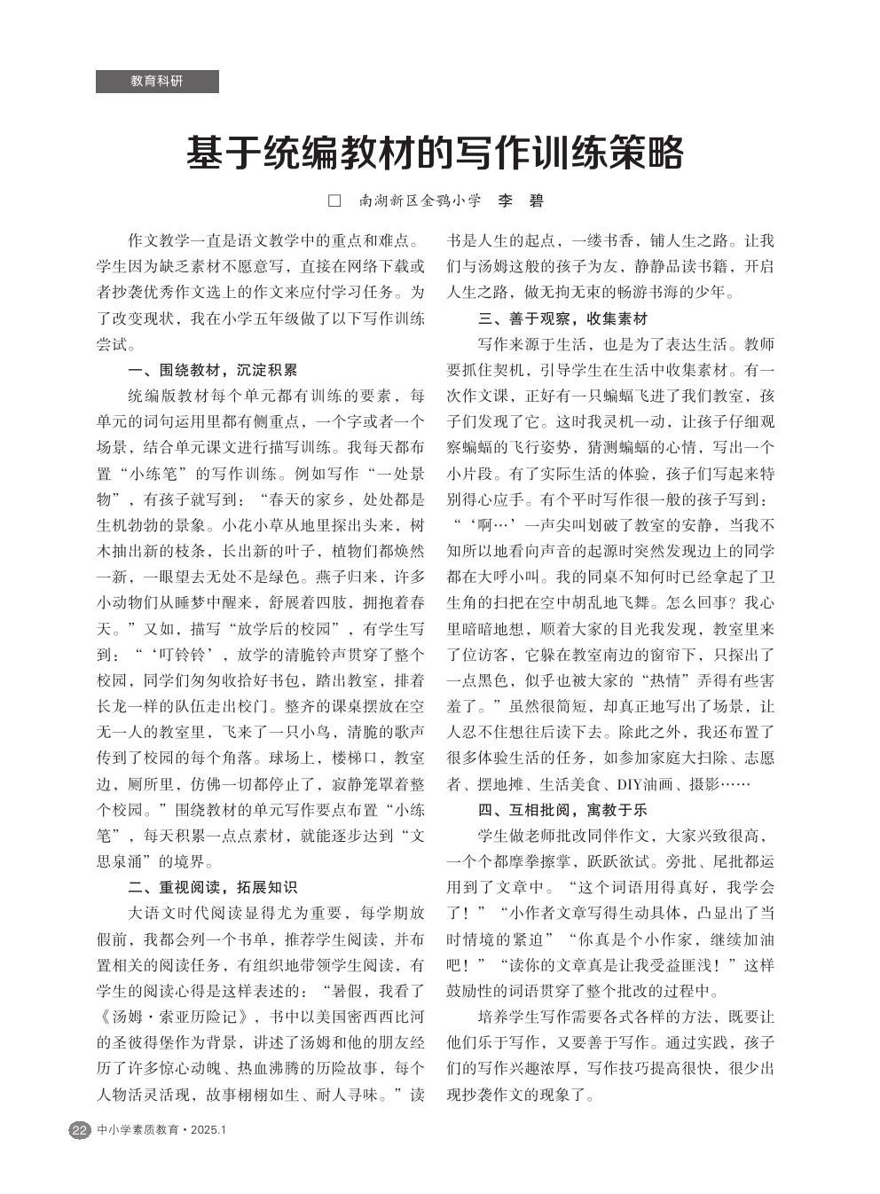 【2025年第1期】基于统编教材的写作训练策略