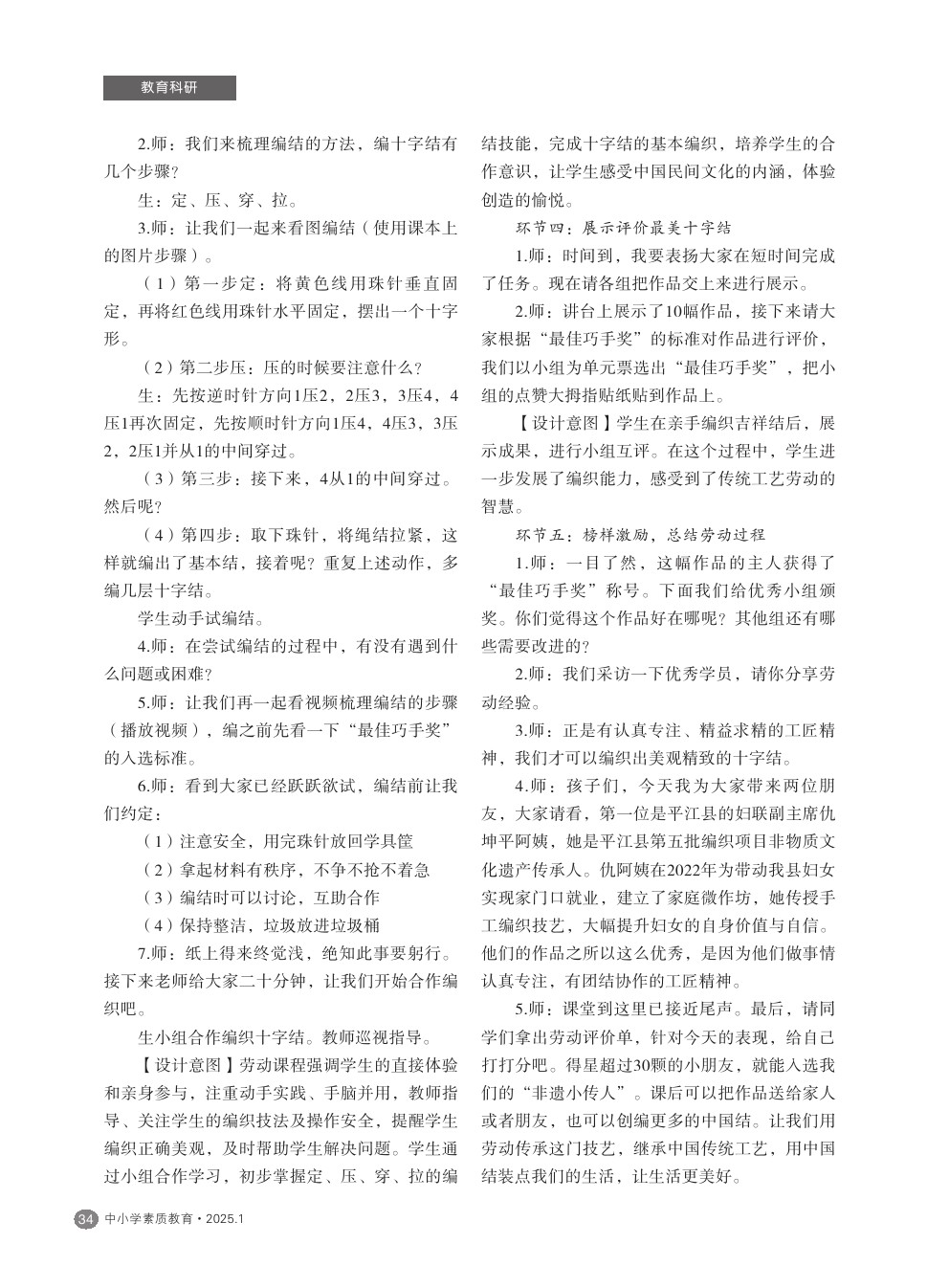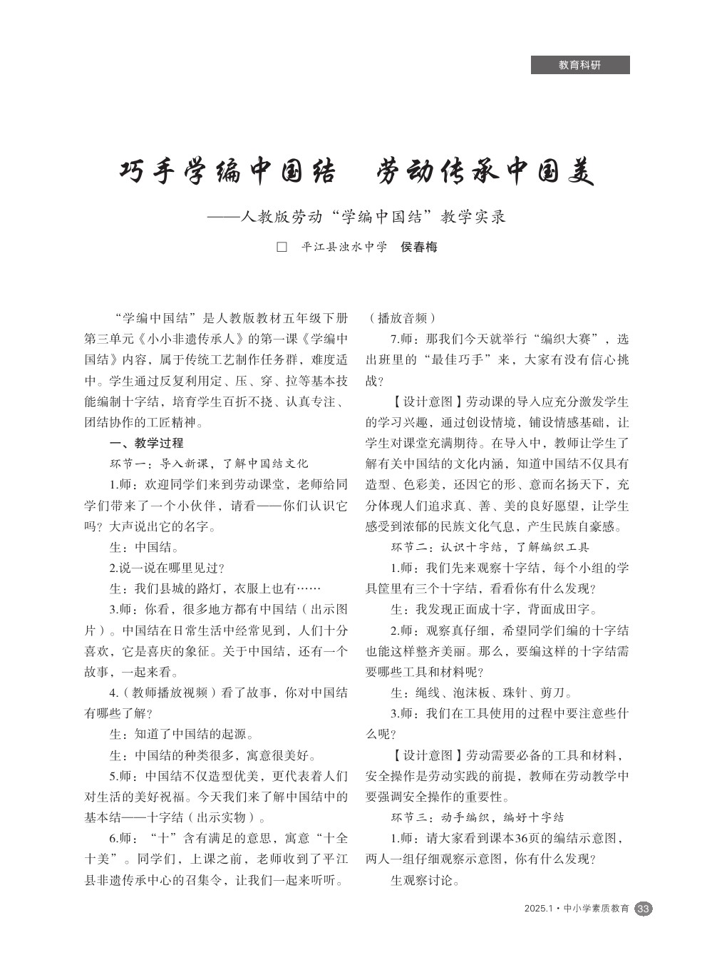 【2025年第1期】巧手学编中国结 劳动传承中国美——人教版劳动“学编中国结”教学实录