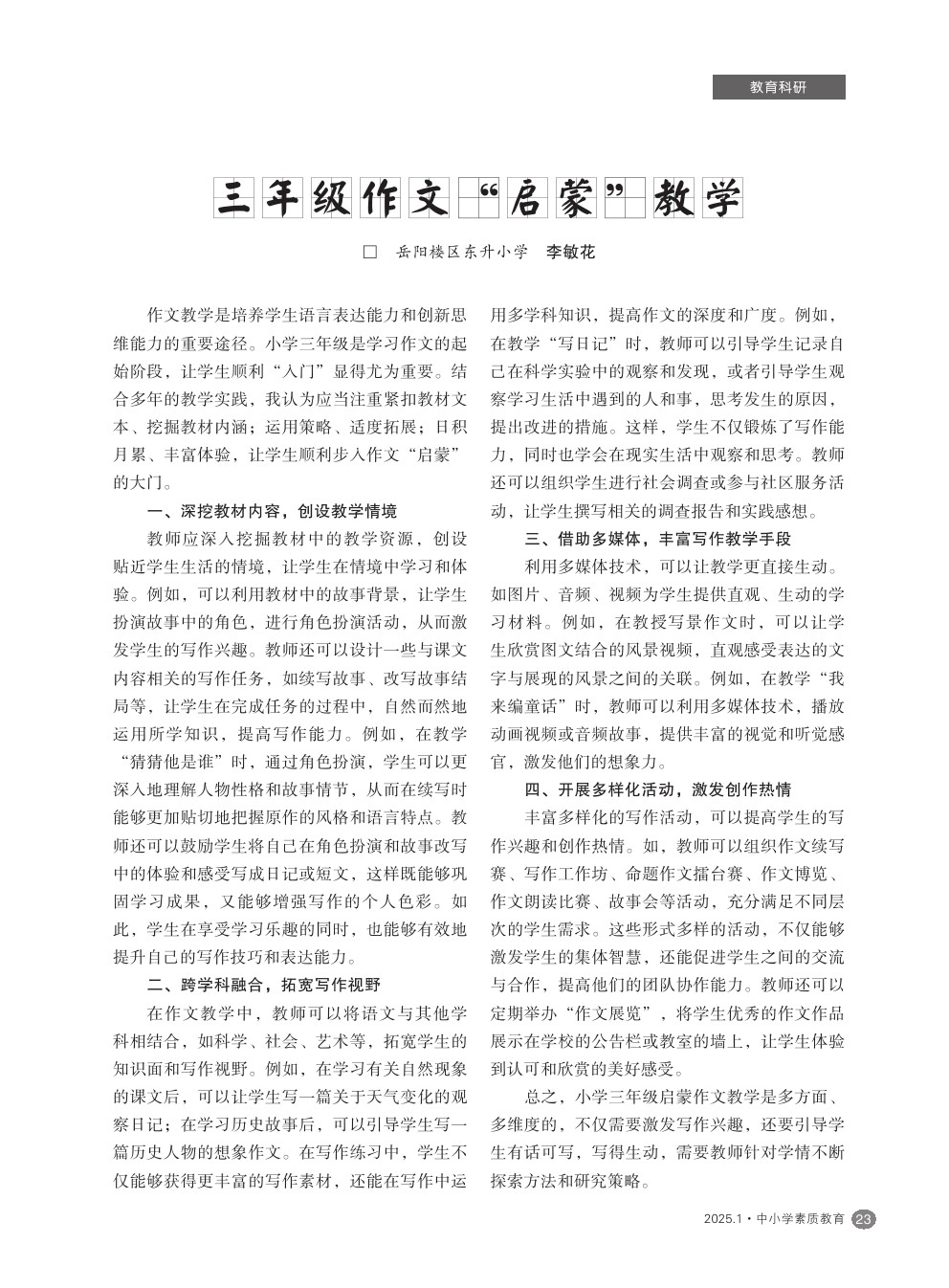 【2025年第1期】三年级作文“启蒙”教学