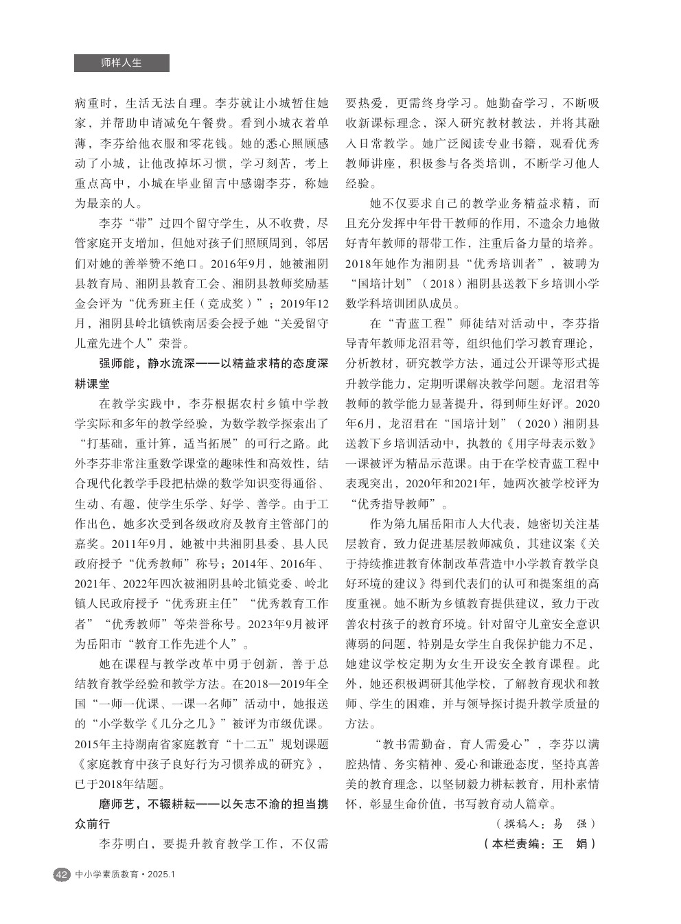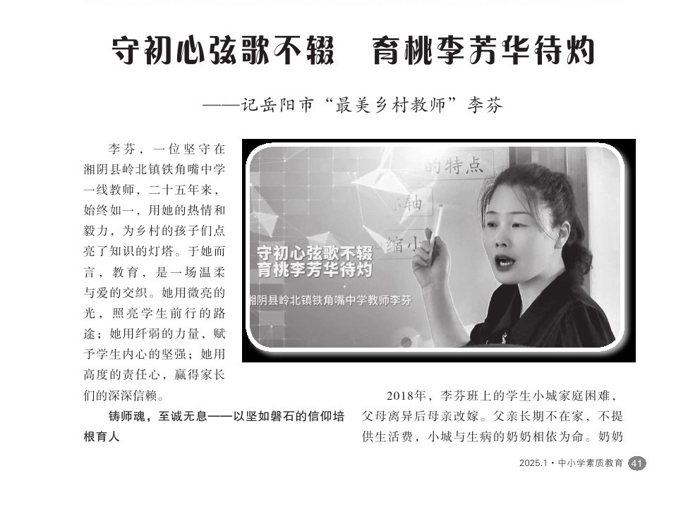 【2025年第1期】守初心弦歌不辍 育桃李芳华待灼——记岳阳市”最美乡村教师“李芬