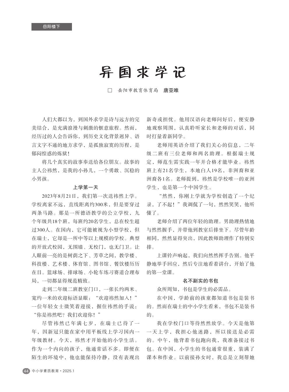 【2025年第1期】异国求学记