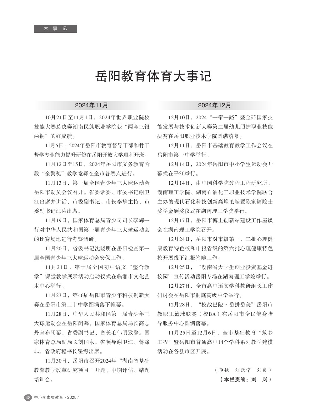 【2025年第1期】岳阳教育体育大事记(2024年11-12月)