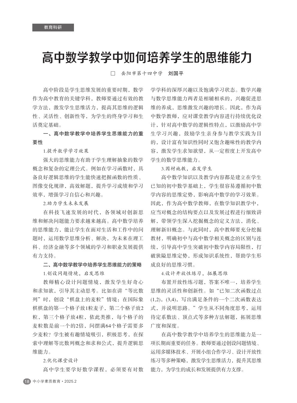 【2025年第2期】高中数学教学中如何培养学生的思维能力