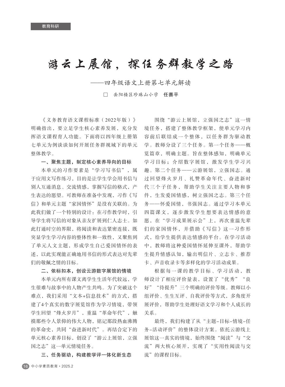 【2025年第2期】游云上展馆,探任务群教学之路——四年级语文上册第七单元解读