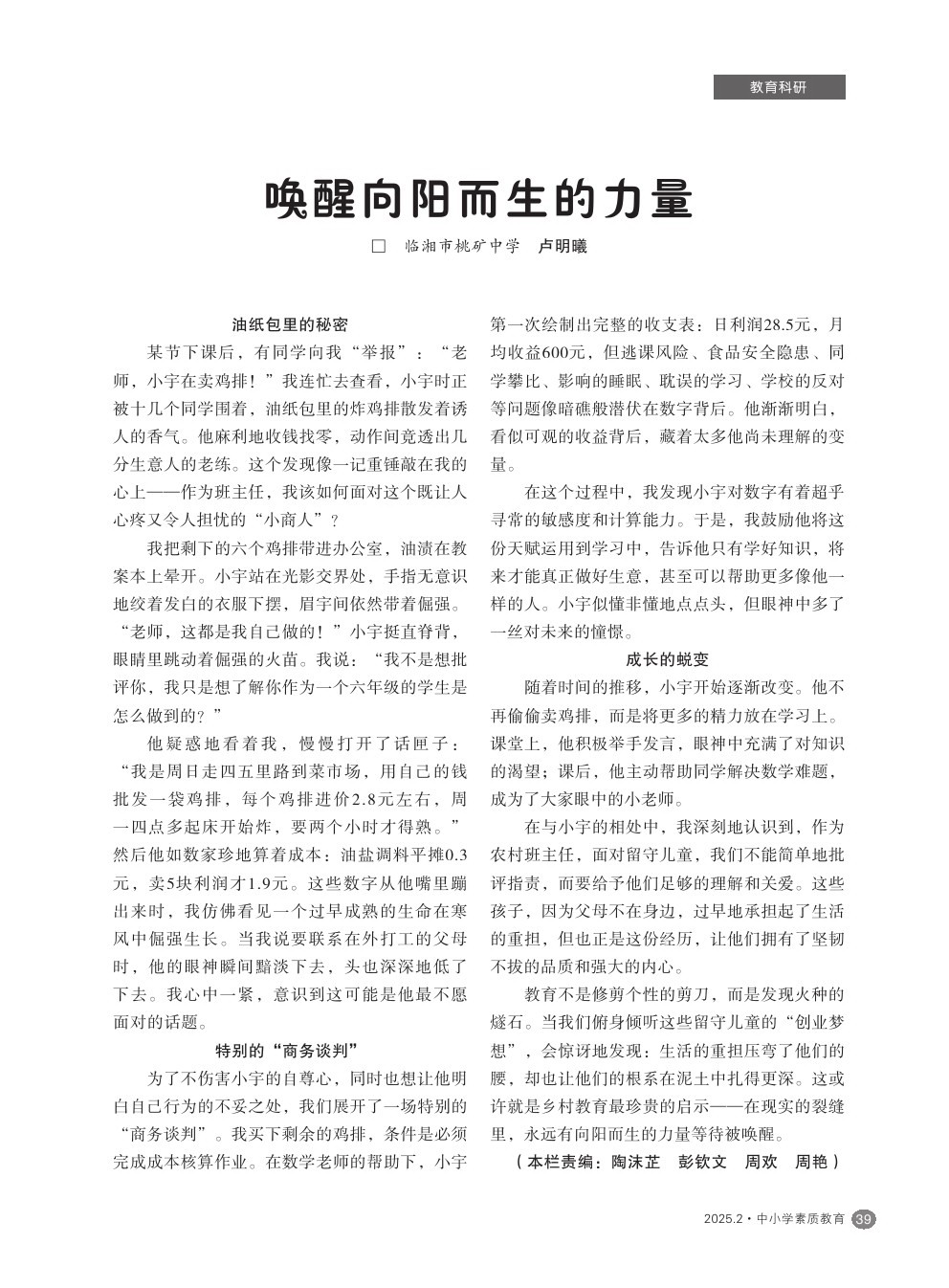 【2025年第2期】唤醒向阳而生的力量