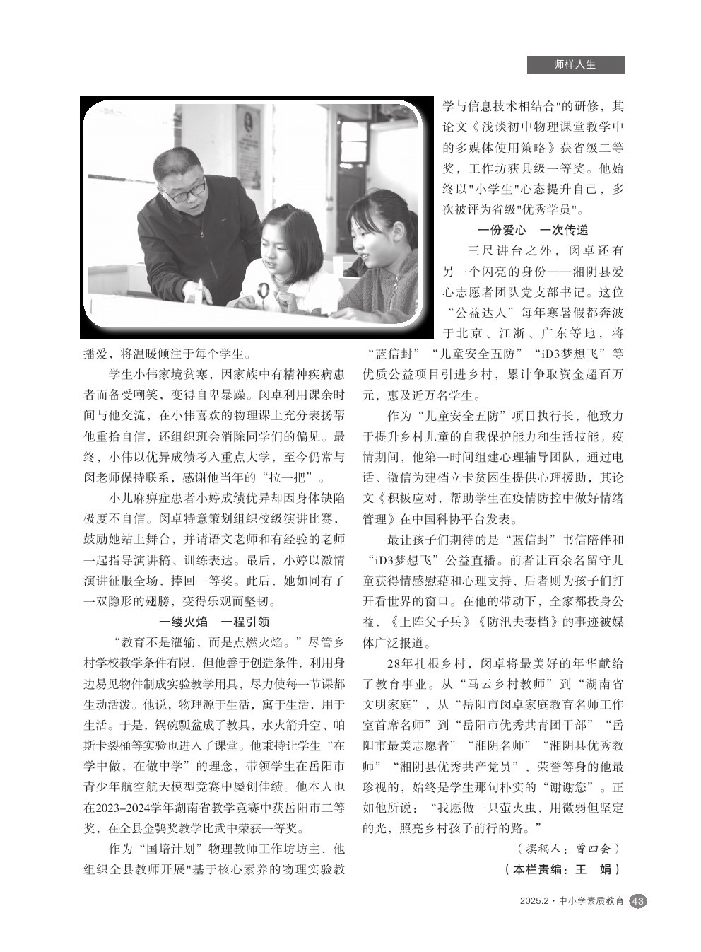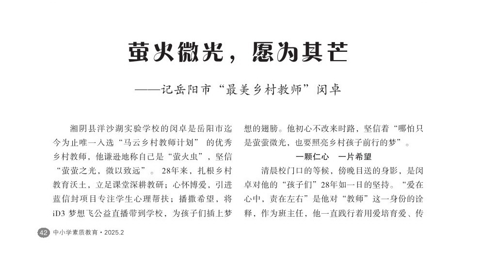 【2025年第2期】萤火微光,愿为其芒——记岳阳市“最美乡村教师”闵卓