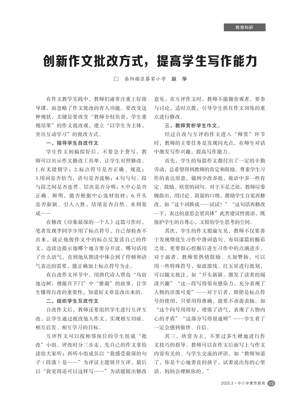 【2025年第3期】创新作文批改方式,提高学生写作能力