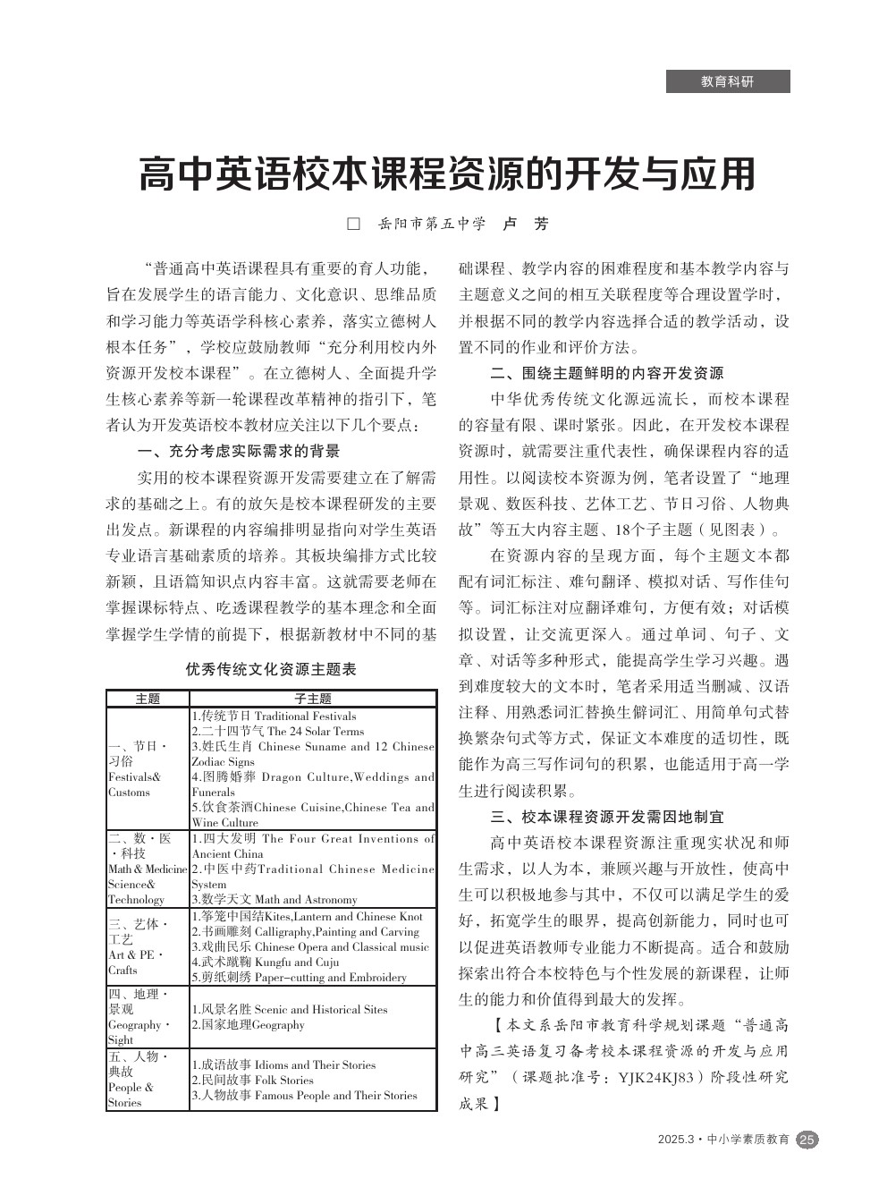 【2025年第3期】高中英语校本课程资源的开发与应用