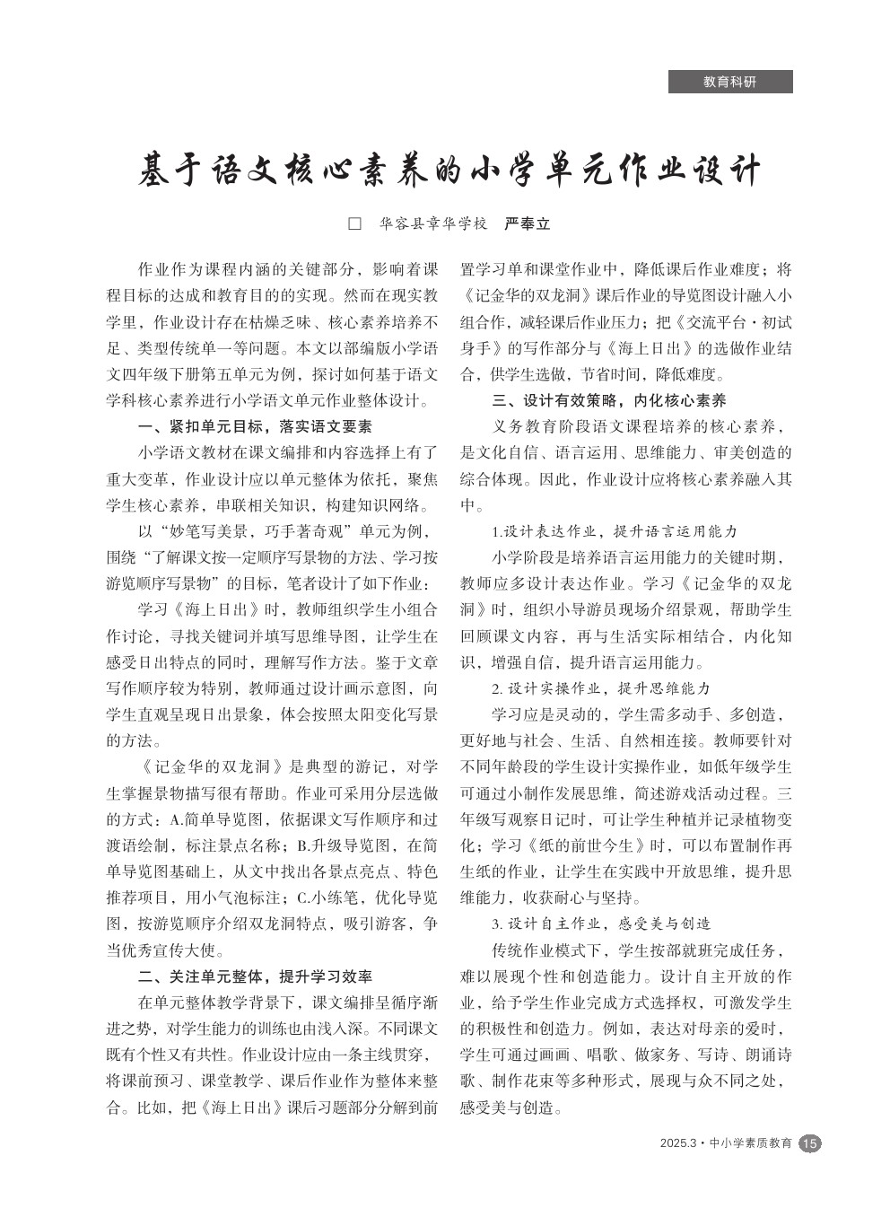 【2025年第3期】基于语文核心素养的小学单元作业设计