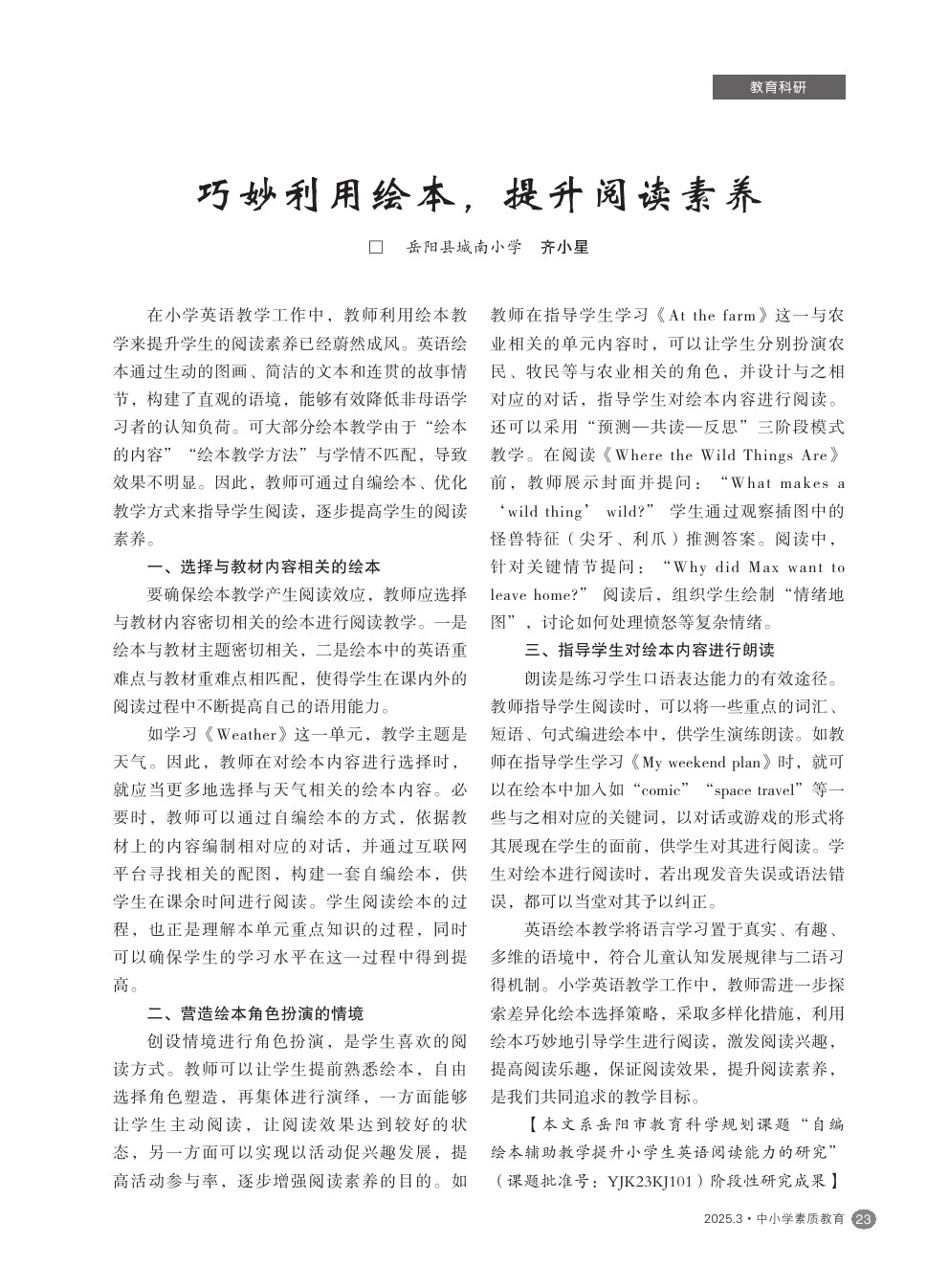 【2025年第3期】巧妙利用绘本,提升阅读素养