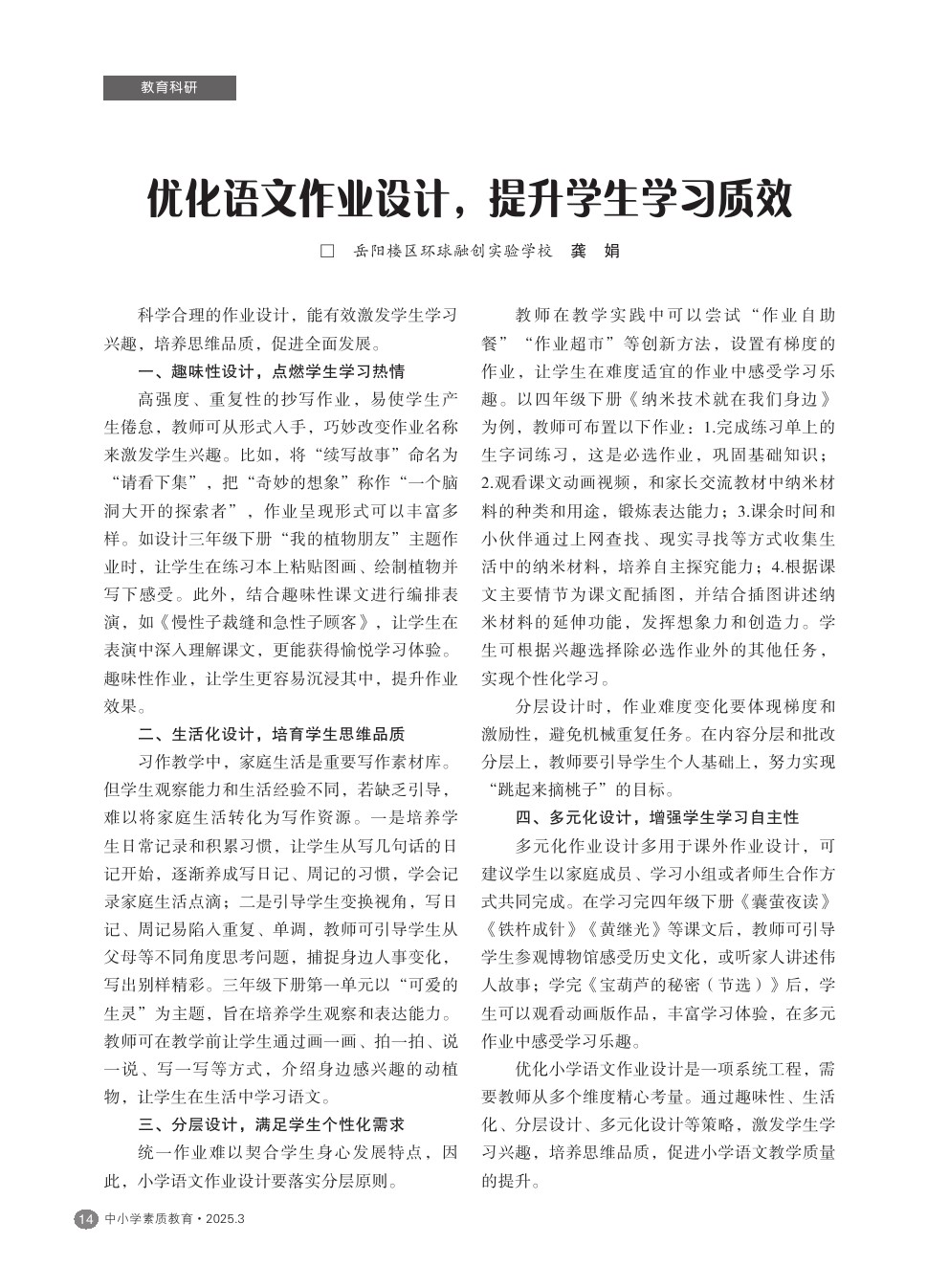 【2025年第3期】优化语文作业设计,提升学生学习质效