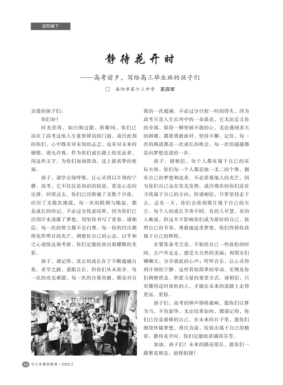 【2025年第3期】静待花开时——高考前夕,写给高三毕业班的孩子们