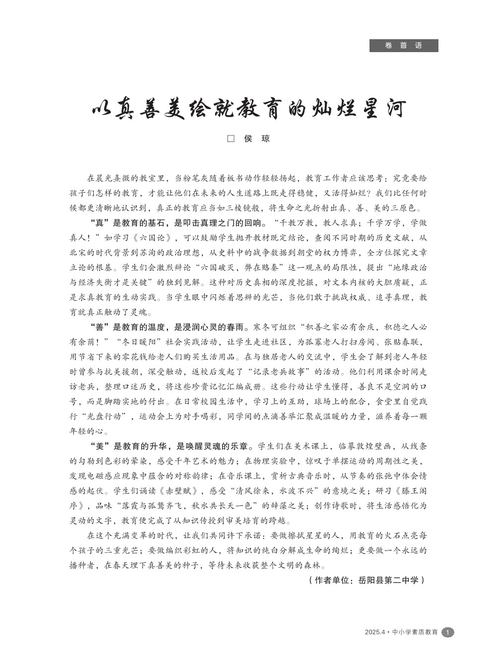 【2025年第4期】以真善美绘就教育的灿烂星河